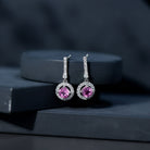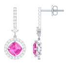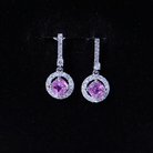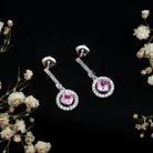 Lab Grown Pink Sapphire and Diamond Bridal Earrings in Silver