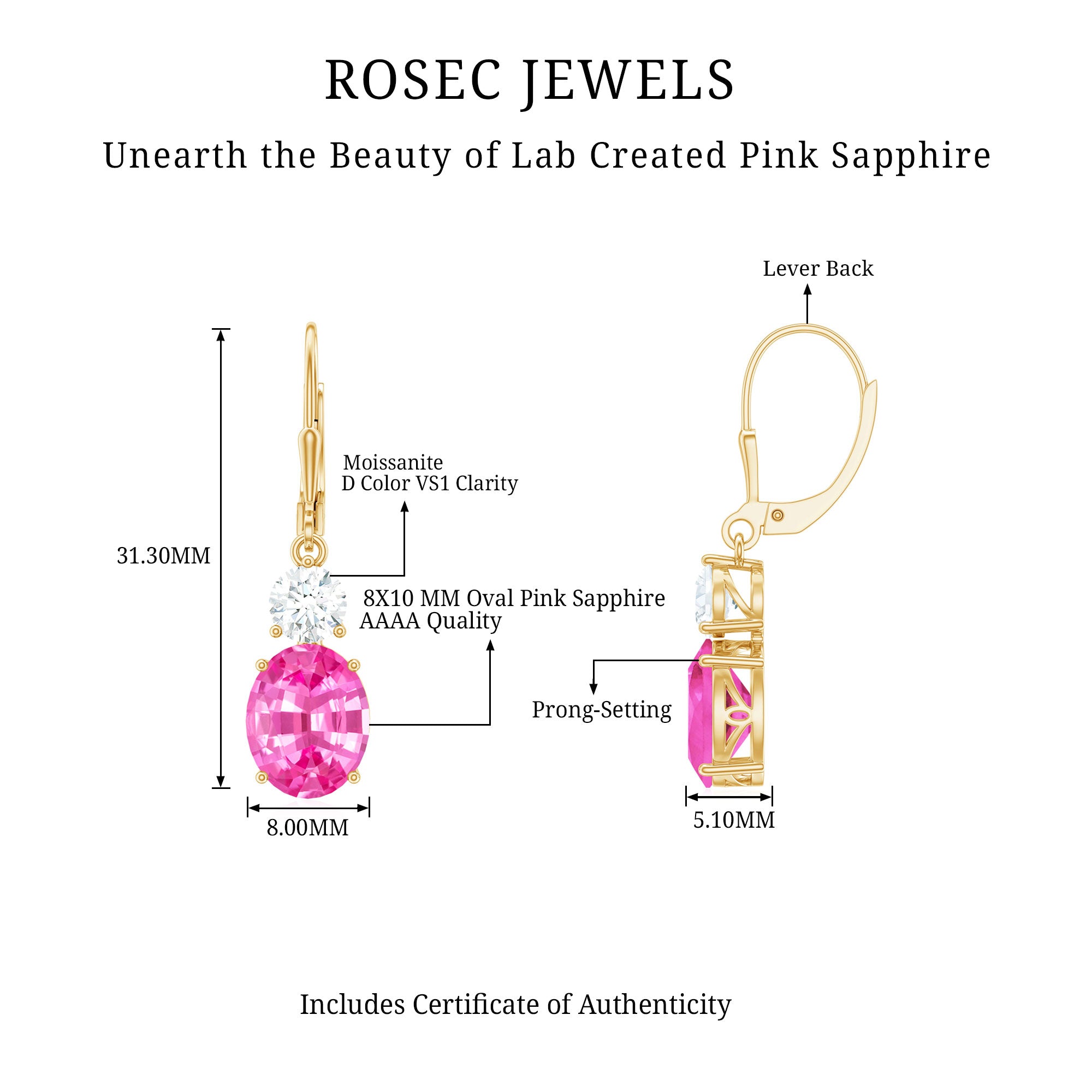 Indulge in timeless sophistication with these exquisite Lab Grown Pink Sapphire Earrings that effortlessly capture attention and draw every gaze towards you. Crafted from premium quality metal, these Hoop Drop Earrings showcase an 8X10 MM oval cut lab created pink sapphire alongside a 5 MM round cut Moissanite, elegantly set in prongs that sway gracefully from a secure leverback closure, shimmering with every movement. Fusing contemporary and traditional aesthetics, they radiate opulence and refinement. Unassuming yet stylish, these Pink Sapphire and Moissanite Earrings feature a meticulously detailed design that commands attention while maintaining an air of grace. As a representation of classic elegance, these Pink Sapphire Hoop Earrings dazzle with their allure and are a must-have addition to your jewelry collection. Renowned for their sophistication and appeal, they present a modern classic style perfect for daily wear. Thus, elevate any ensemble with these breathtaking Sapphire Drop Earrings that infuse a touch of luxury and contrast into your look. This beauty will arrive in a signature jewelry box, ensuring safe storage when not in use, accompanied by a certificate of authenticity.