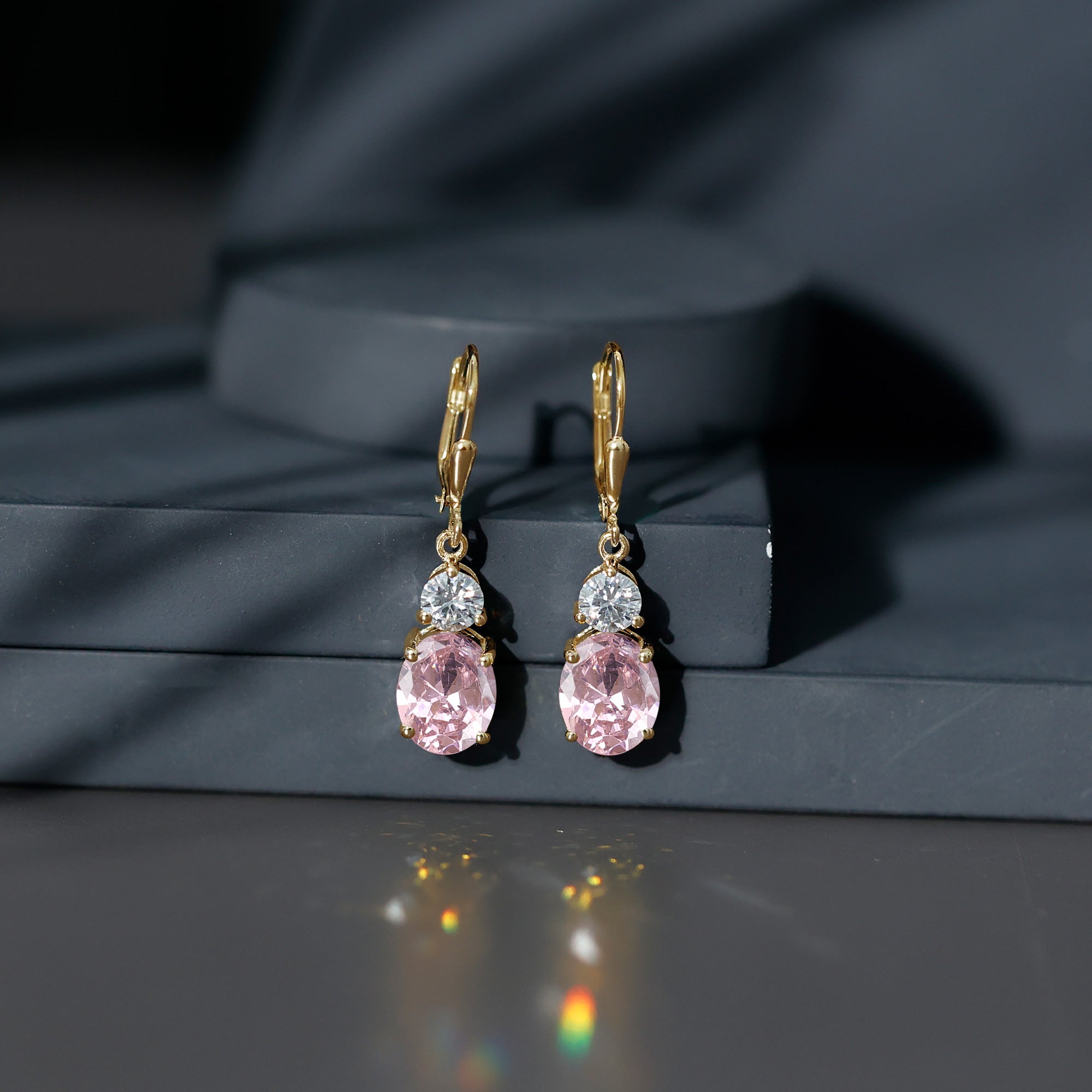 Lab Grown Pink Sapphire and Moissanite Drop Earrings With Leverback