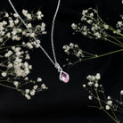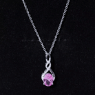 Invoke your feminine energy by wearing this Lab Created Pink Sapphire Pendant Necklace, crafted especially to decorate your neckline. The pendant features 6X8 MM Oval Shape Pink Sapphire of AAAA Quality (Lab Made) placed at the center of a partially studded infinity frame. This vertical Infinity pendant can be presented as the symbol of an everlasting bond with your special one. The hidden bail pendant dangles with a sturdy cable chain that makes it beautifully sit on the neckline. The Knot Pendant Necklace will be delivered to you in a safe and secure package in a signature velvet jewelry pouch.