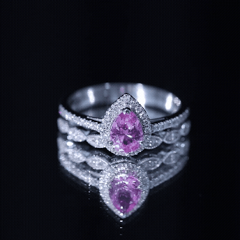 Lab Grown Pink Sapphire Pear Shaped Engagement Ring Set