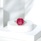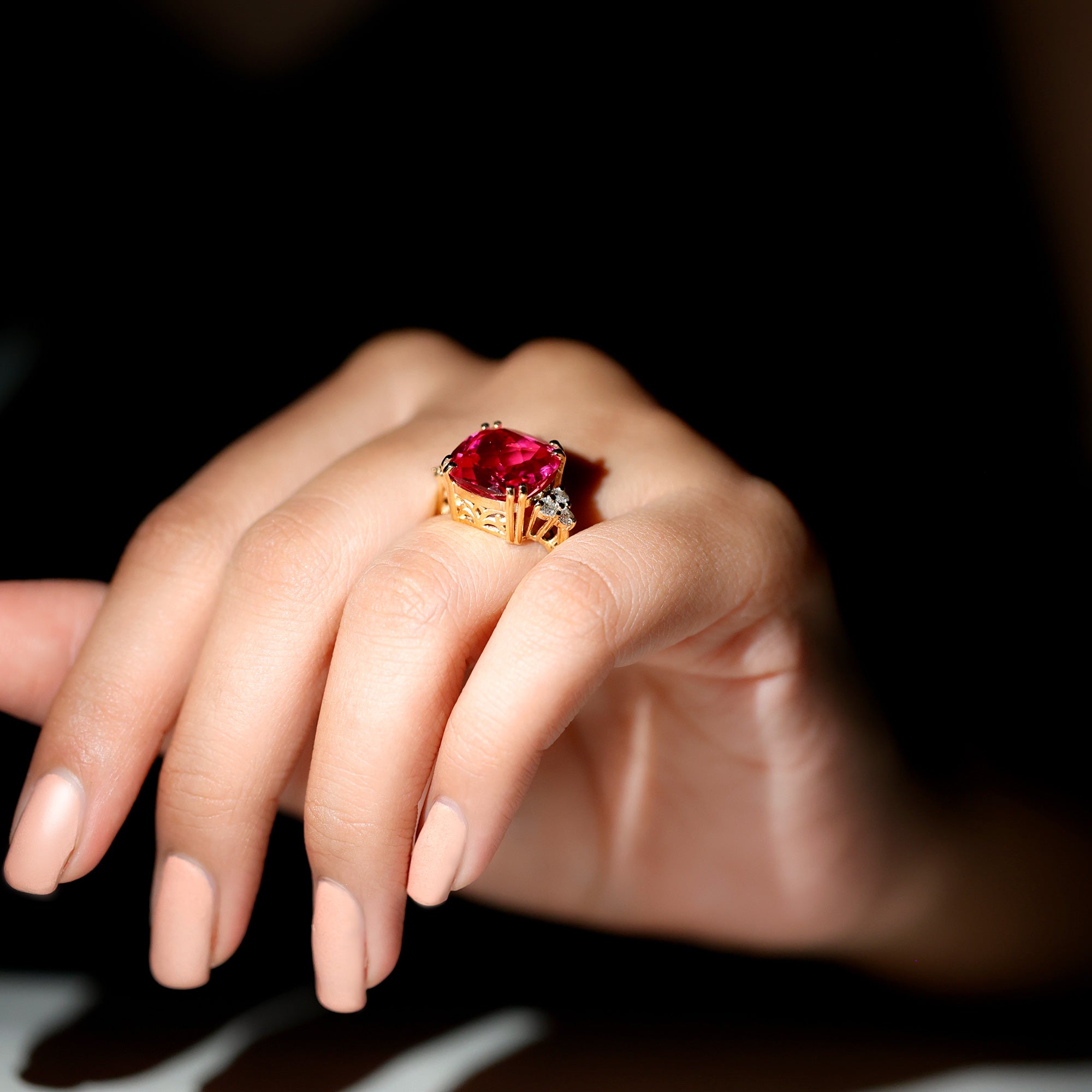 Adorn her finger with timeless elegance with this stunning Solitaire Engagement Ring, designed to make every moment unforgettable. It features a brilliant 12 MM cushion cut lab created pink sapphire, set in prong setting. Flanking the center sapphire are trios of round cut diamonds on both sides, carefully placed to enhance the ring’s sparkle and create a dazzling and balanced design. The HI-SI quality diamonds catch the light beautifully, adding a touch of luxury and brilliance that perfectly complements the vibrant AAAA quality pink sapphire. Crafted with precision, this Pink Sapphire Engagement Ring combines timeless style with modern sophistication. Comfortable to wear, this Huge Engagement Ring is suitable for everyday elegance and special occasions alike. Perfect for proposals, anniversaries, cocktail parties, or celebrating a milestone in your relationship, this Sapphire and Diamond Ring is a symbol of commitment, love, and devotion. Its classic design ensures it will remain a cherished and treasured piece for years to come.