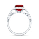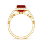 Lab Grown Ruby and Diamond Asscher Cut Engagement Ring With Enhancer