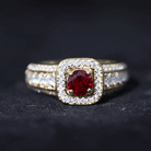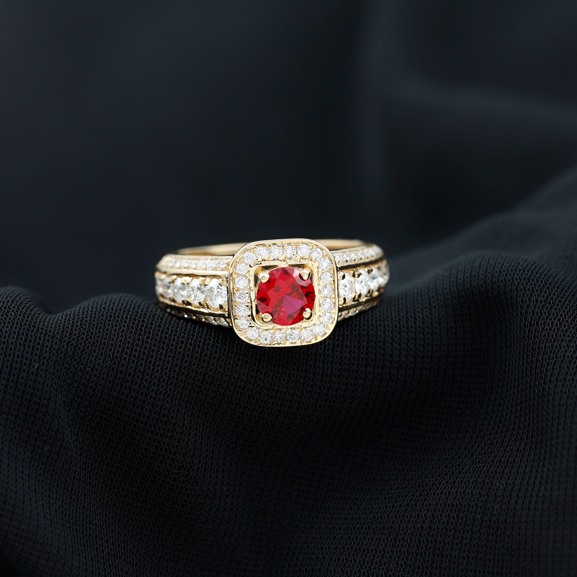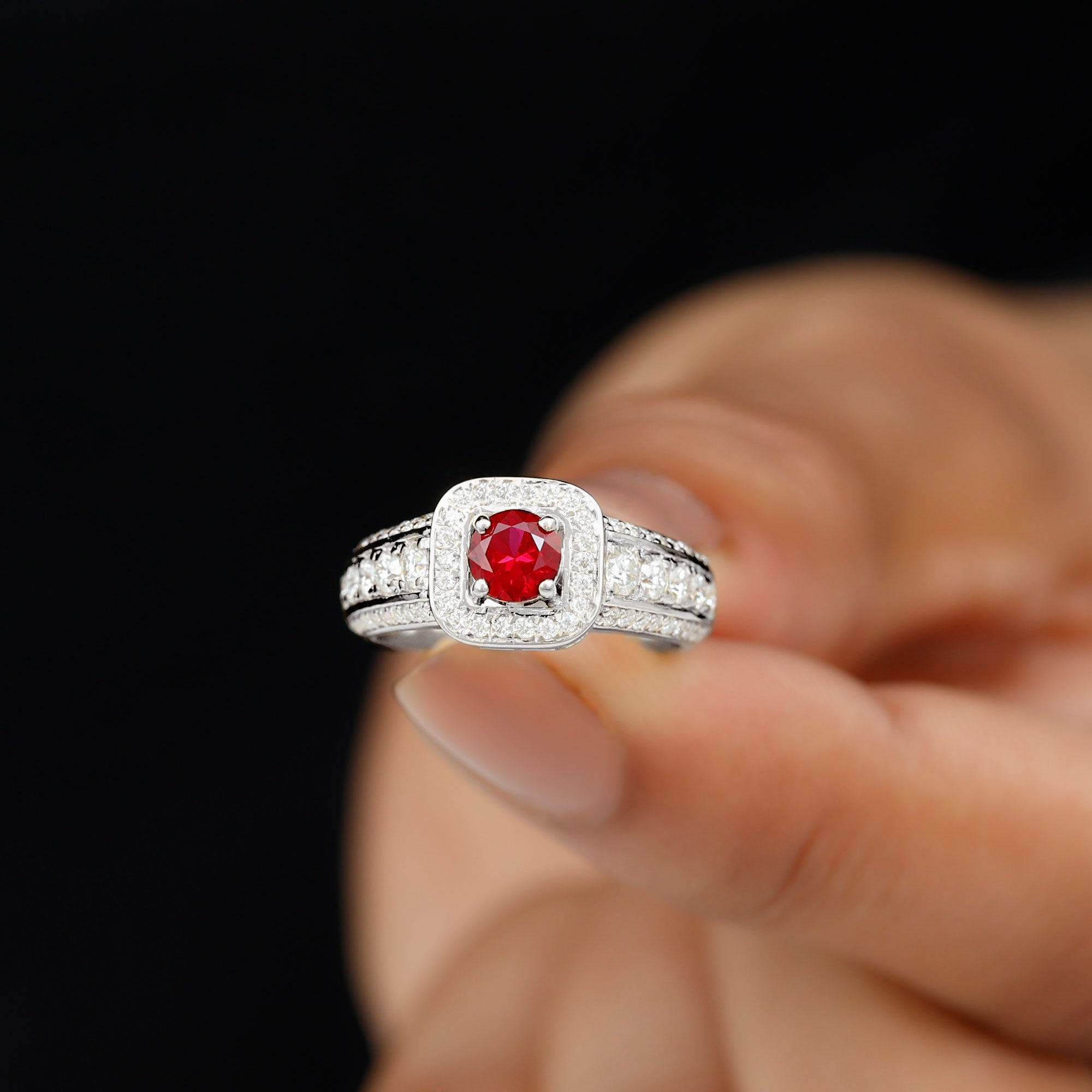 Lab Grown Ruby and Moissanite Halo Engagement Ring