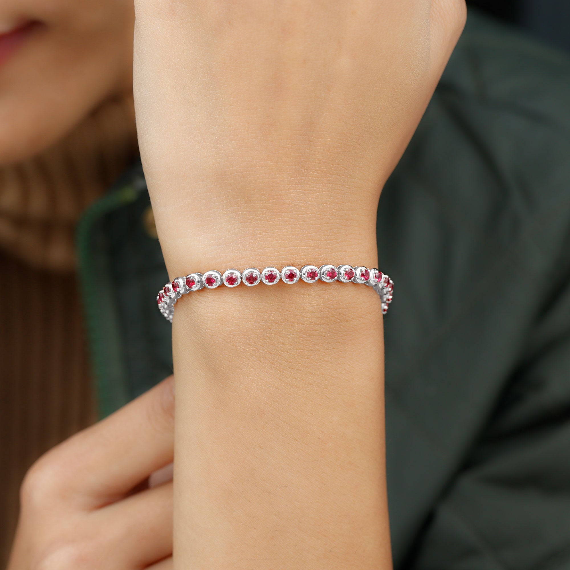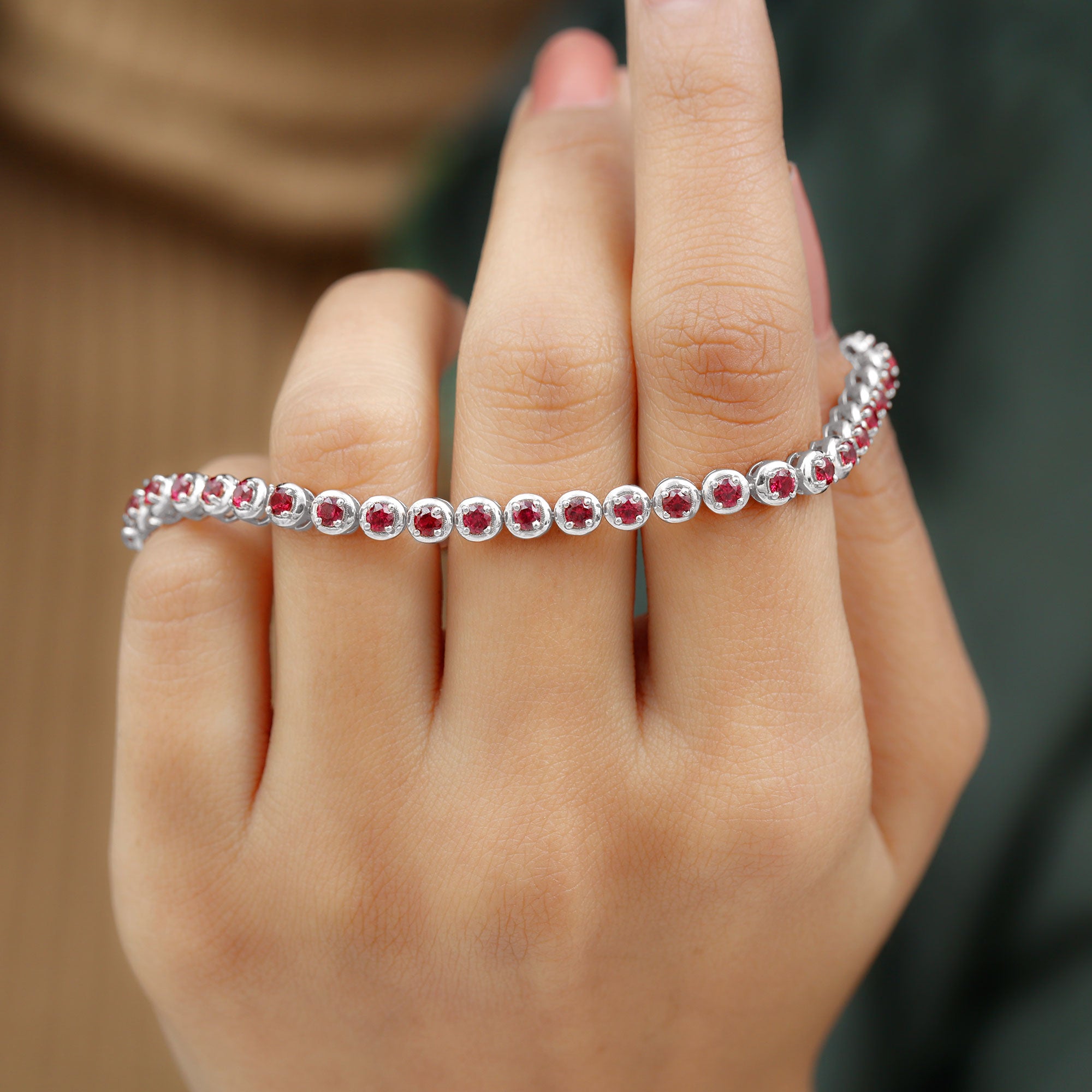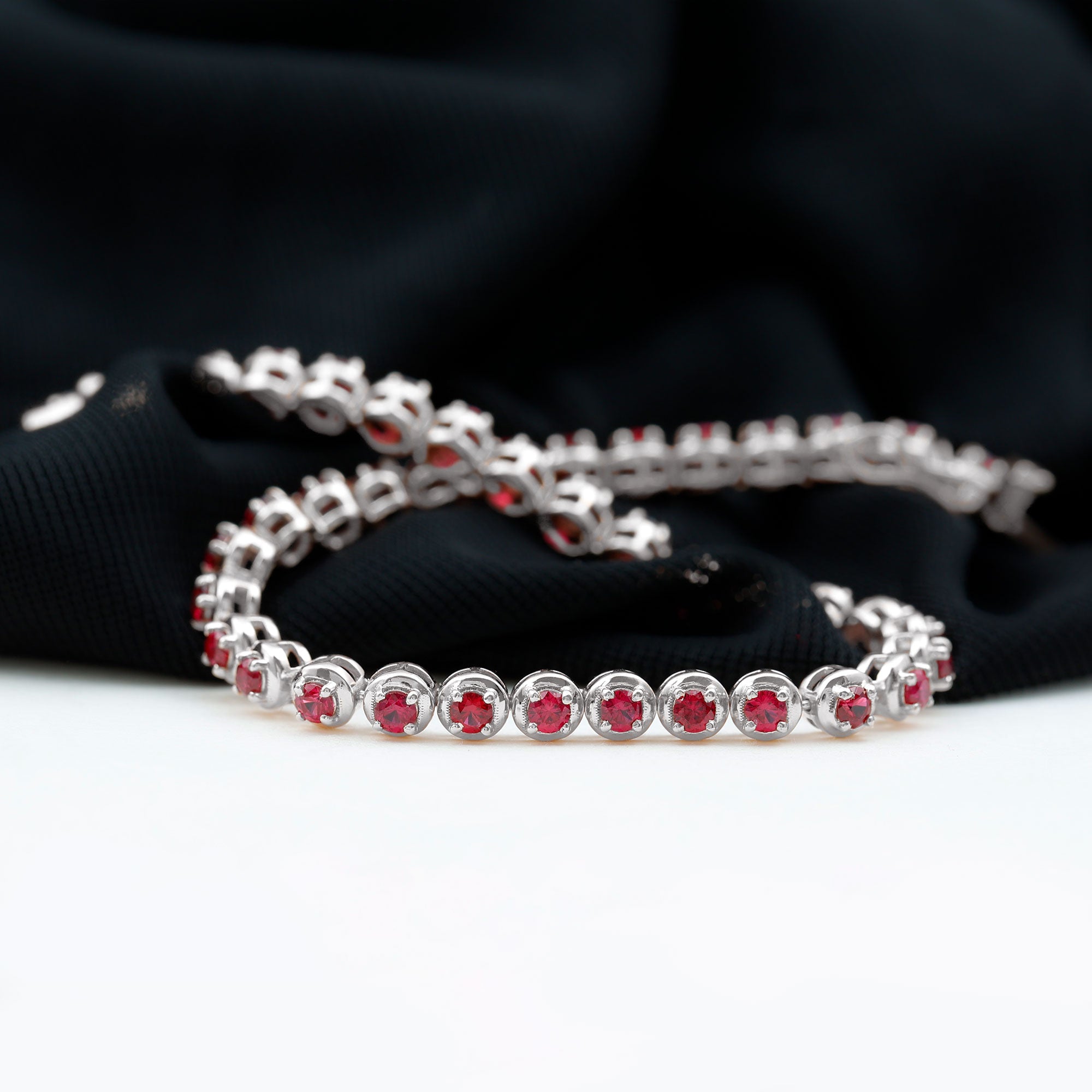 Elevate your style with our Unisex Classic Tennis Bracelet, showcasing stunning Round Shape Created Ruby exquisitely adorned in a secure Prong Setting. This bracelet is a versatile and timeless accessory, perfect for both men and women, offering a touch of sophistication and elegance to any attire or occasion.