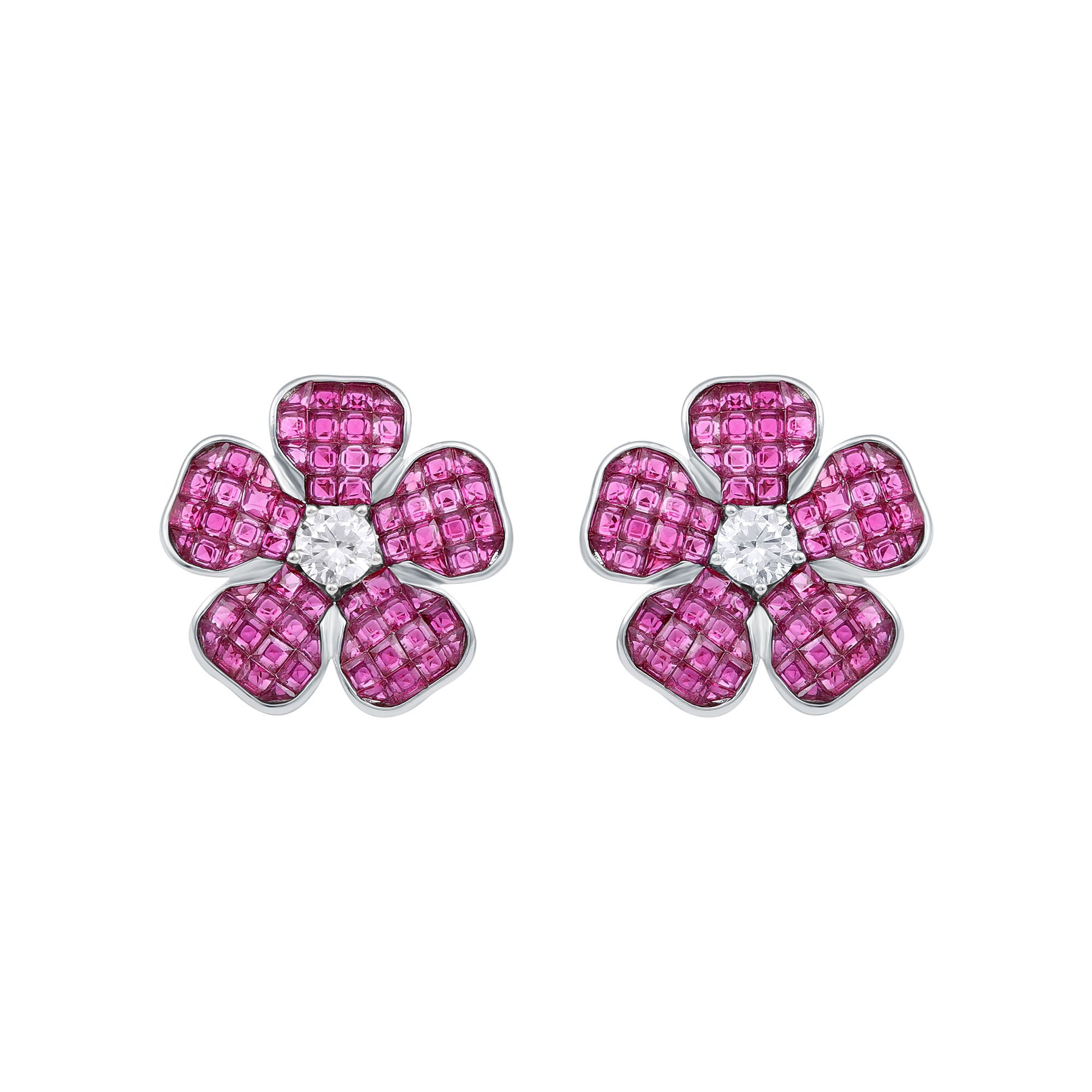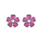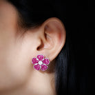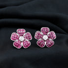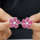 Lab Grown Ruby Flower Stud Earrings in Sterling Silver