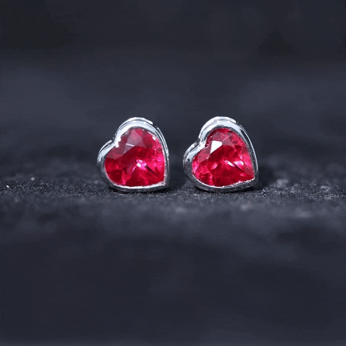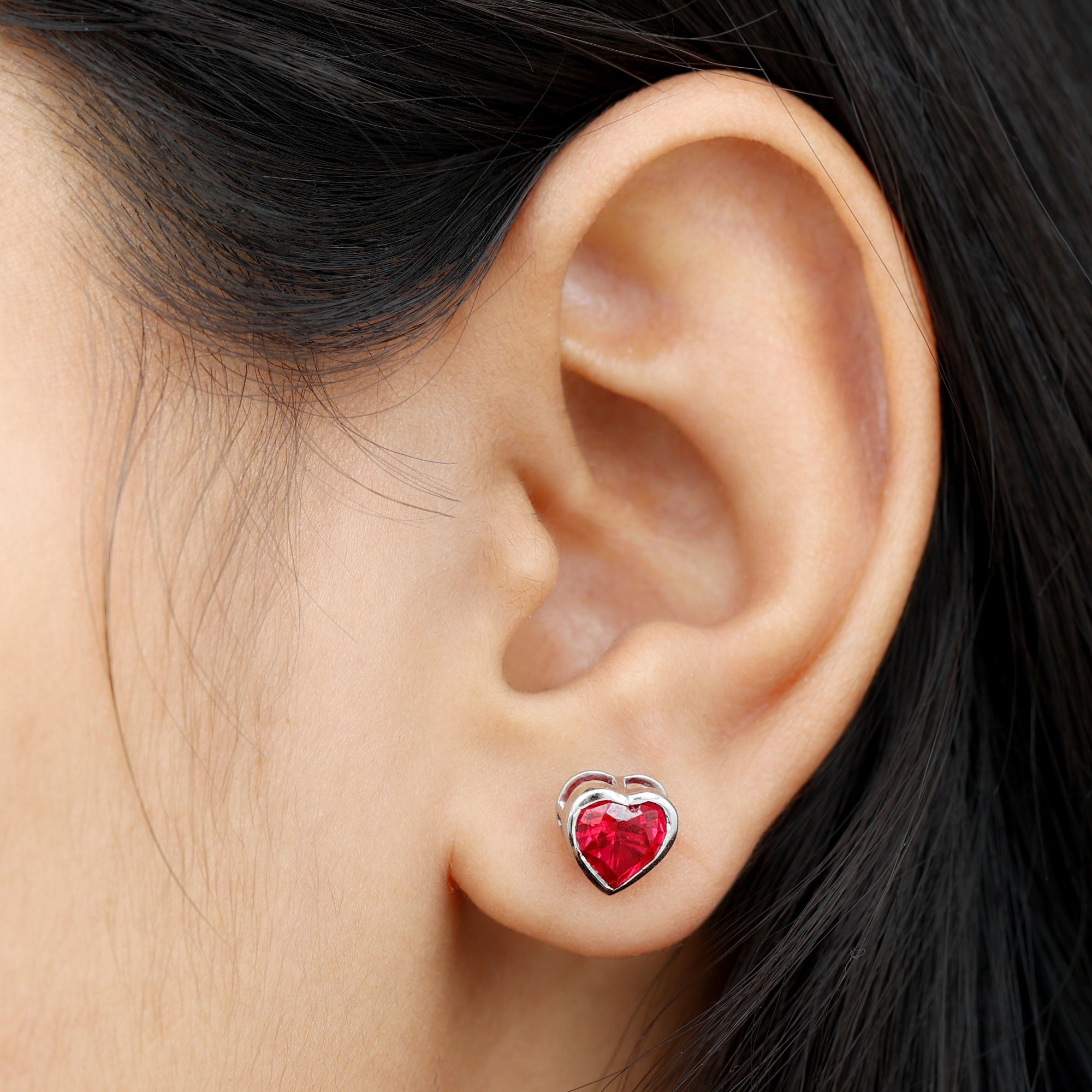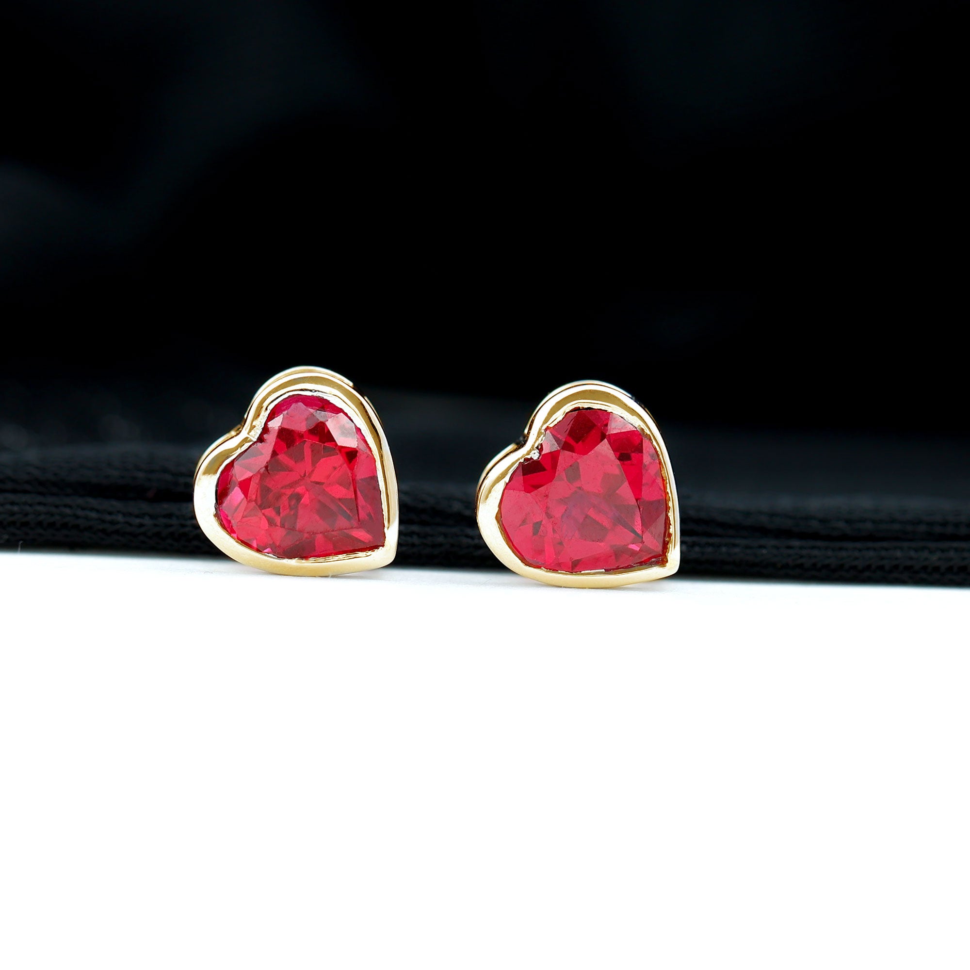 Beautiful and Alluring Lab Created Ruby Stud earrings are adorned with a stunning Solitaire Heart Shape Lab Created Ruby is set in a bezel setting. Add some color to your jewelry collection with this gemstone earring. An ideal accessory for any occasion.