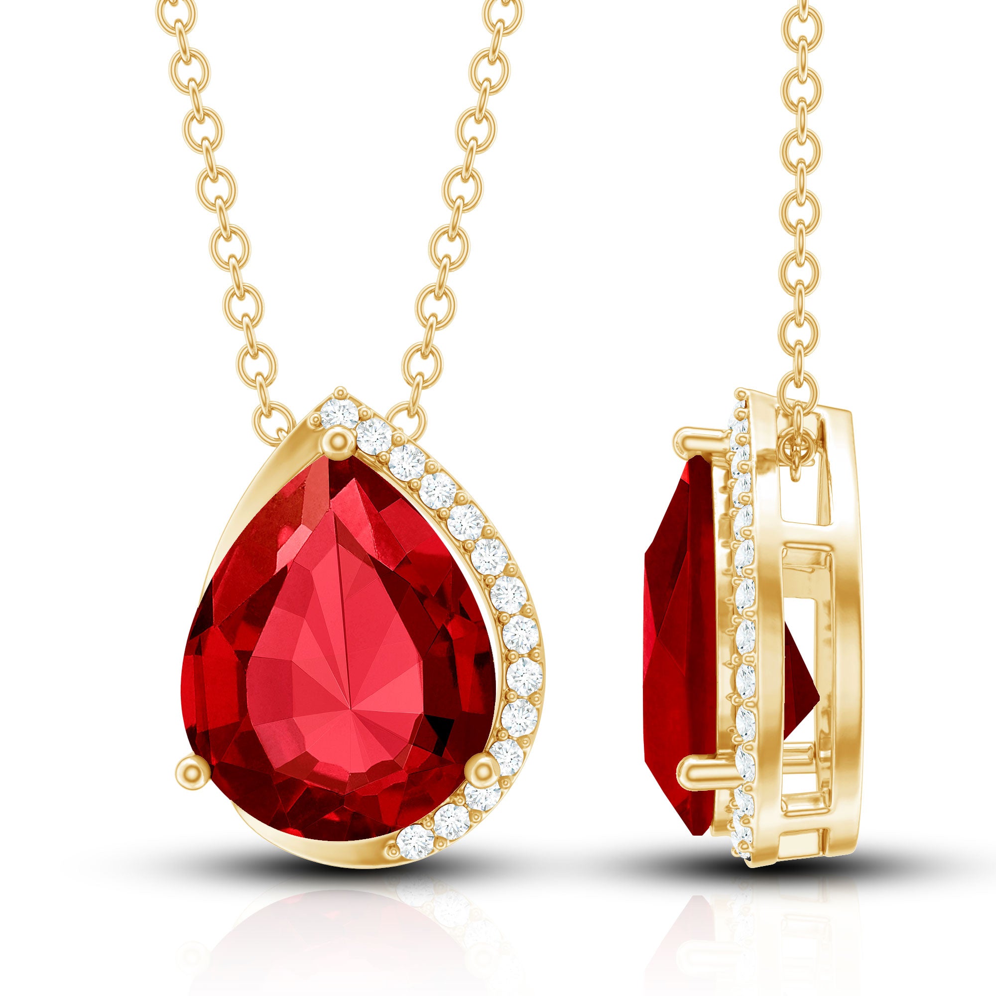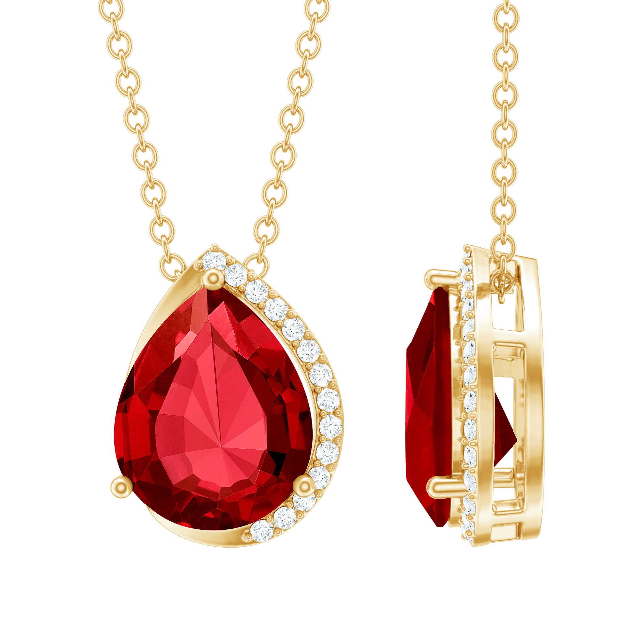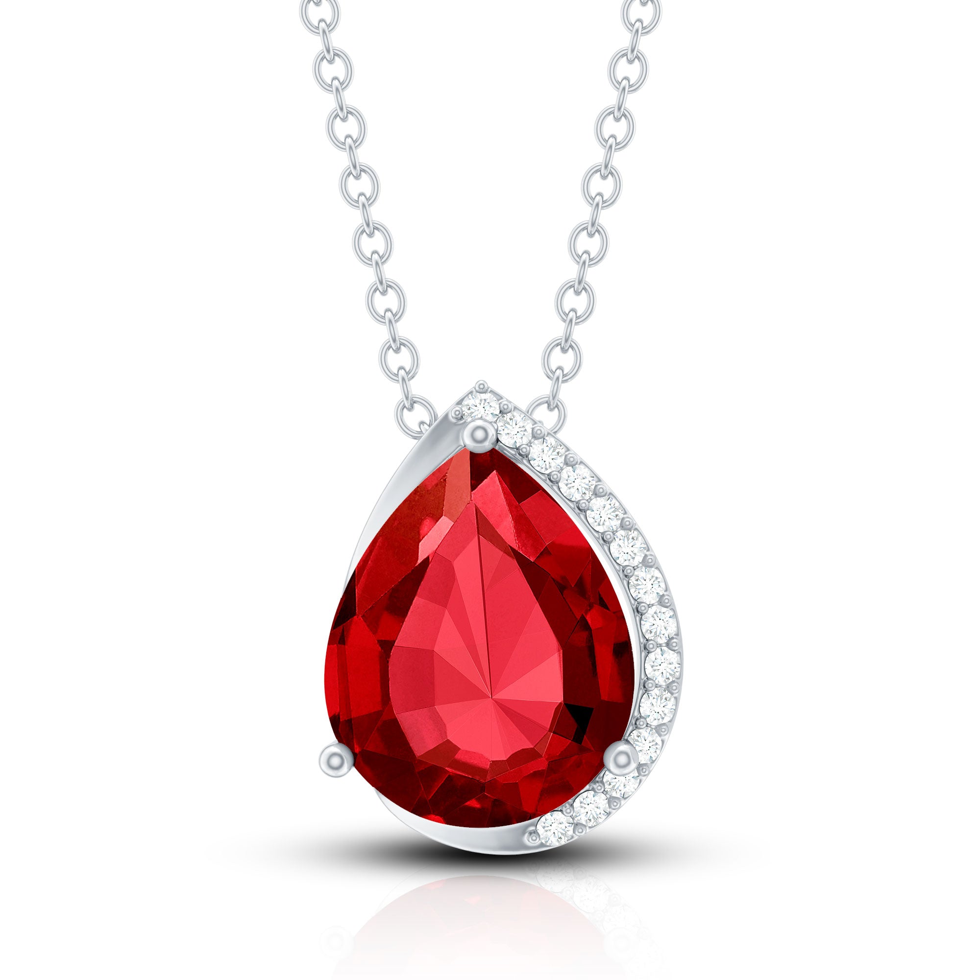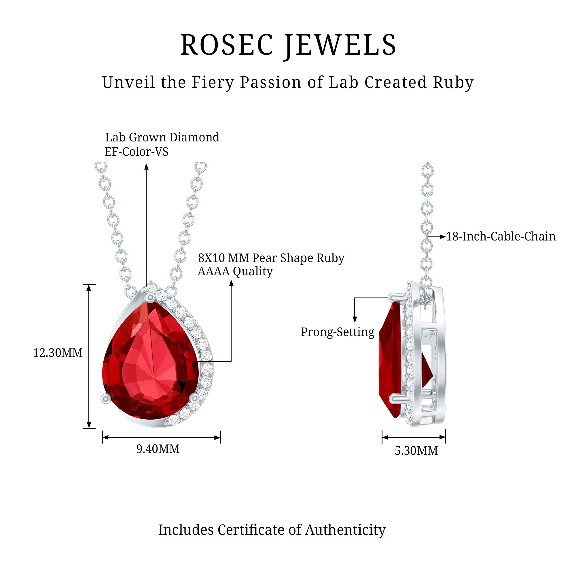 Step into the spotlight with our Minimal Lab Grown Ruby Pendant Necklace (Lab Grown Ruby), destined to light up your day and night. A 8X10 MM Pear Shaped Lab Grown Ruby, embraced by Round Lab Created Diamond in prong setting, forms a captivating Teardrop Pendant. The fiery red allure of AAAA Quality Ruby and the dazzling brilliance of EF-VS Quality Diamonds make this piece the ultimate choice for parties or a chic day out with your loved ones. Elevate your style and turn heads with this Ruby Diamond Pendant.