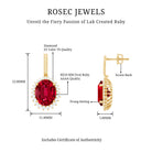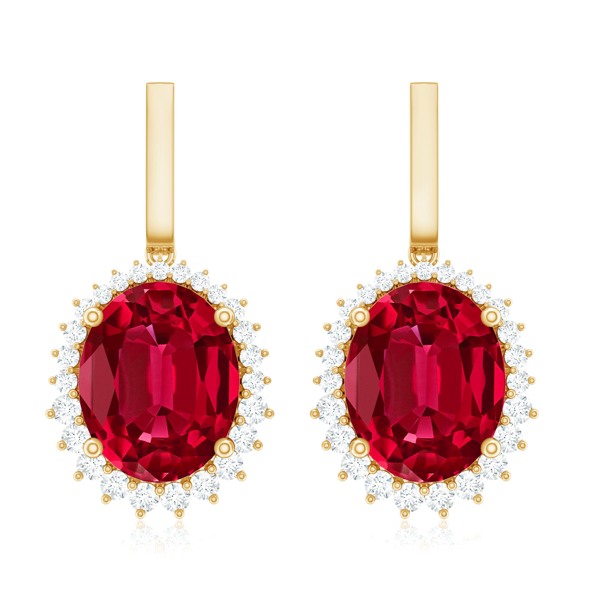 Lab Grown Ruby Vintage Inspired Earrings with Diamond Halo