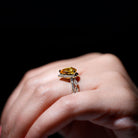 Lab Grown Yellow Sapphire Engagement Ring with Diamond Wedding Band