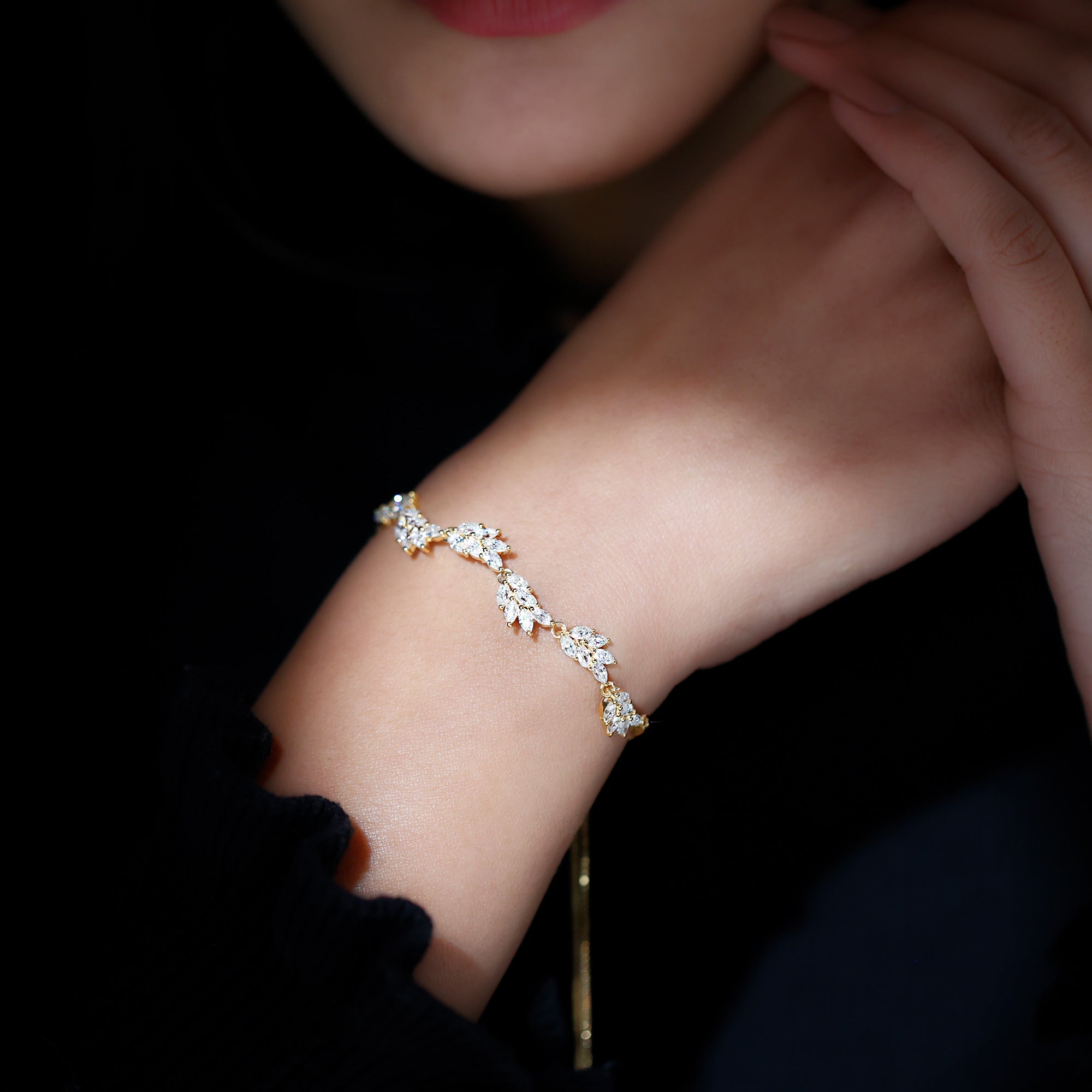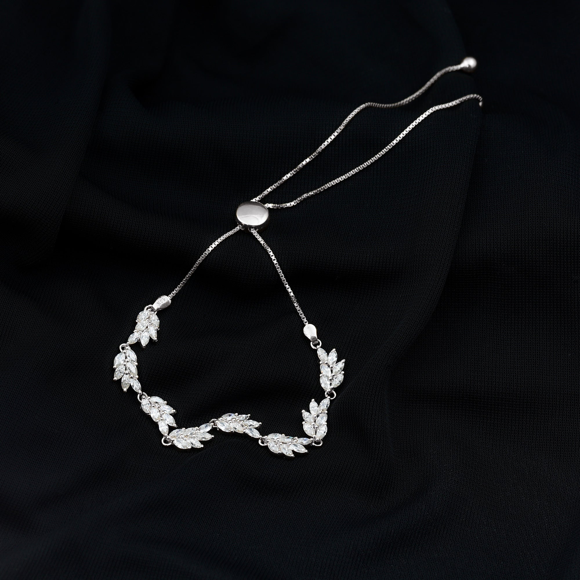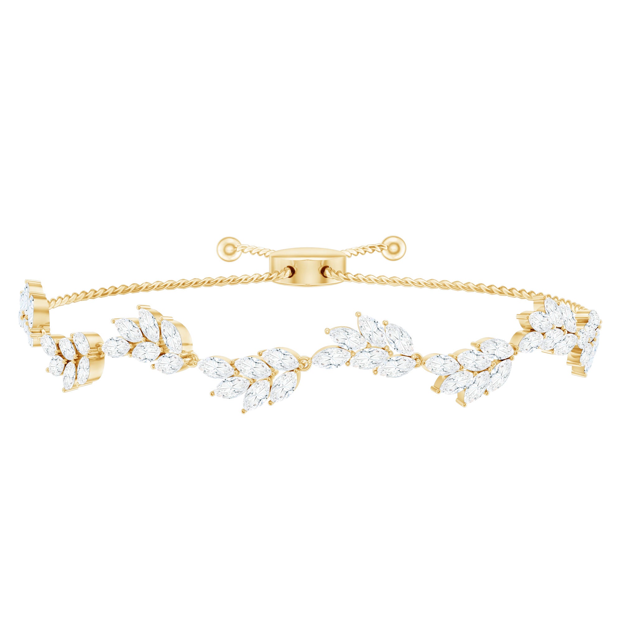 Make your wife feel even more special by gifting this appealing Leaf Bolo Bracelet, embedded with Marquise Cut Moissanite Gemstone set in the Prong Setting and lovingly.