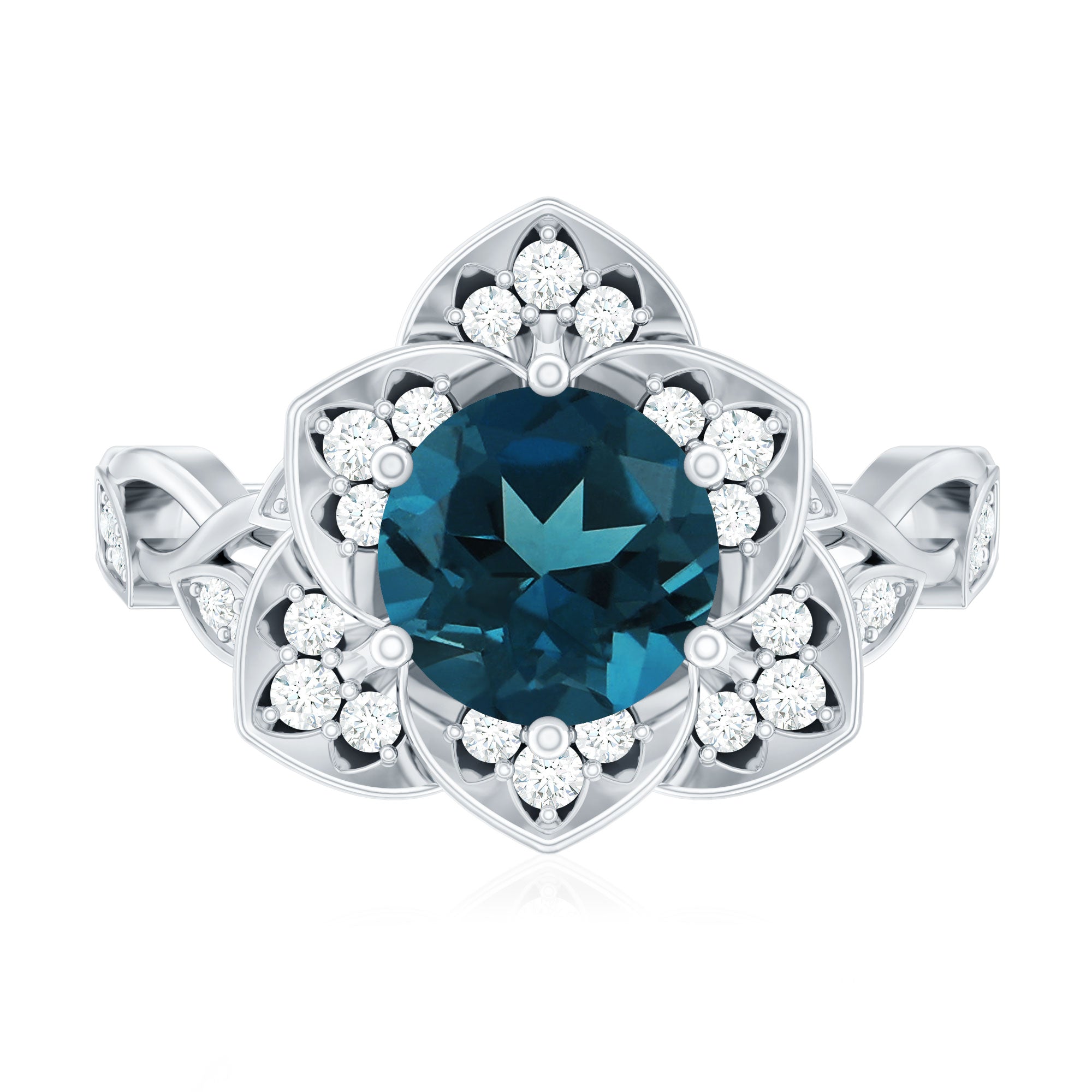 London Blue Topaz and Diamond Cocktail Flower Engagement Ring
