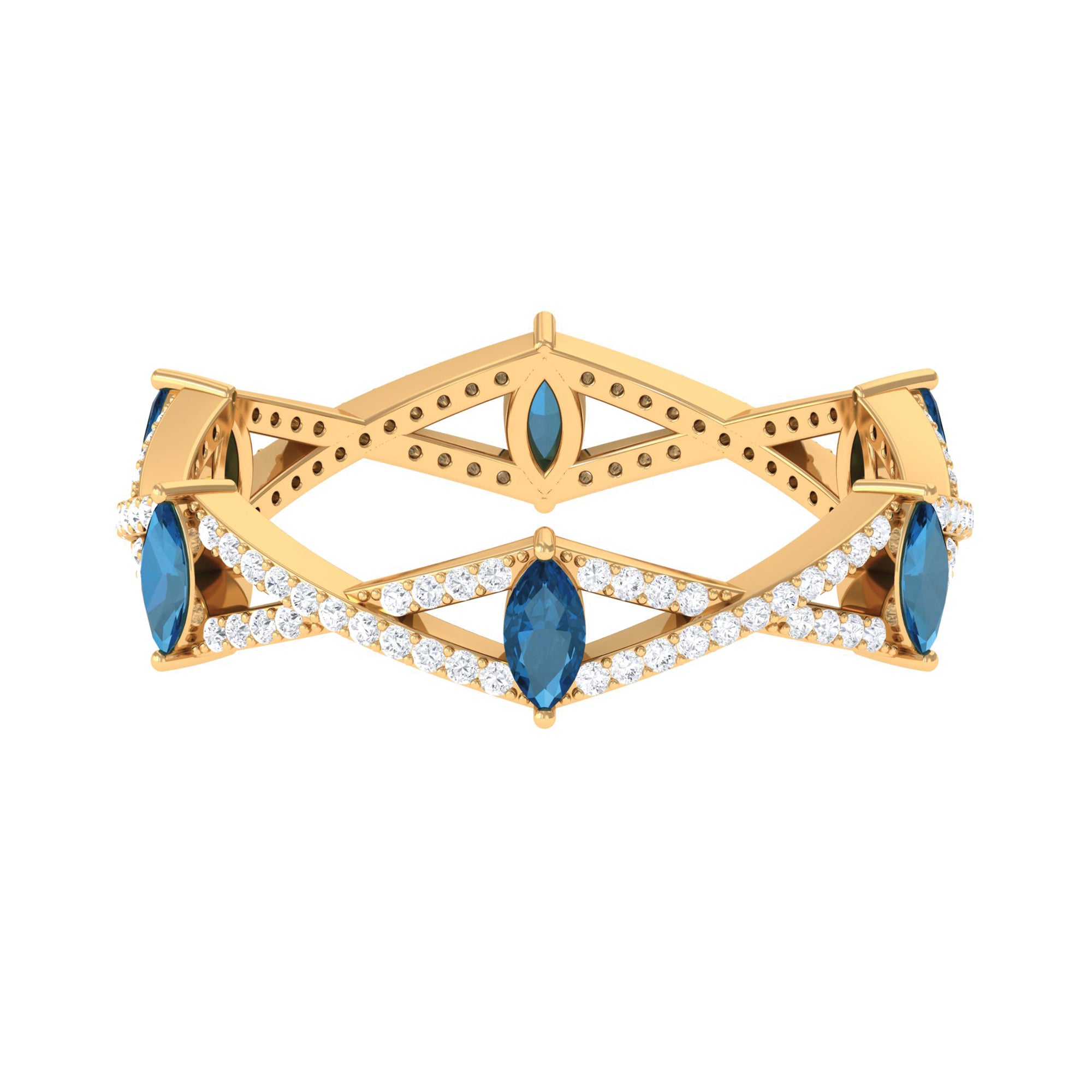 Marquise London Blue Topaz Crossover Eternity Band with Diamond