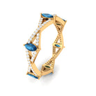 This Full Eternity Band Ring perfectly combines boldness and elegance, designed to elevate your outfit instantly. Whether you are preparing for a special evening or simply wish to enhance your everyday stack with something distinctive, this Blue Topaz Wedding Band delivers the wow factor without being excessive. The Crossover Eternity Band showcases exquisite marquise cut london blue topaz gemstones, each meticulously set in a secure prong setting. Between each blue topaz stone are round cut diamond stones, arranged over a flowing crossover design that imparts a graceful movement to the band. What truly makes this piece stand out is the harmonious interplay between the dark blue topaz and the shimmering diamonds. The contrast provides depth, while the crossover style introduces a modern twist that feels trendy. This natural Blue Topaz and Diamond Ring Is perfect for those who appreciate rings with a touch of uniqueness, whether worn alone for a striking appearance or stacked with other cherished pieces. Additionally, it serves as a beautiful wedding band, a chic anniversary gift, or simply a delightful treat for yourself. If you appreciate elegant details infused with a hint of luxury, this piece is tailored for you.