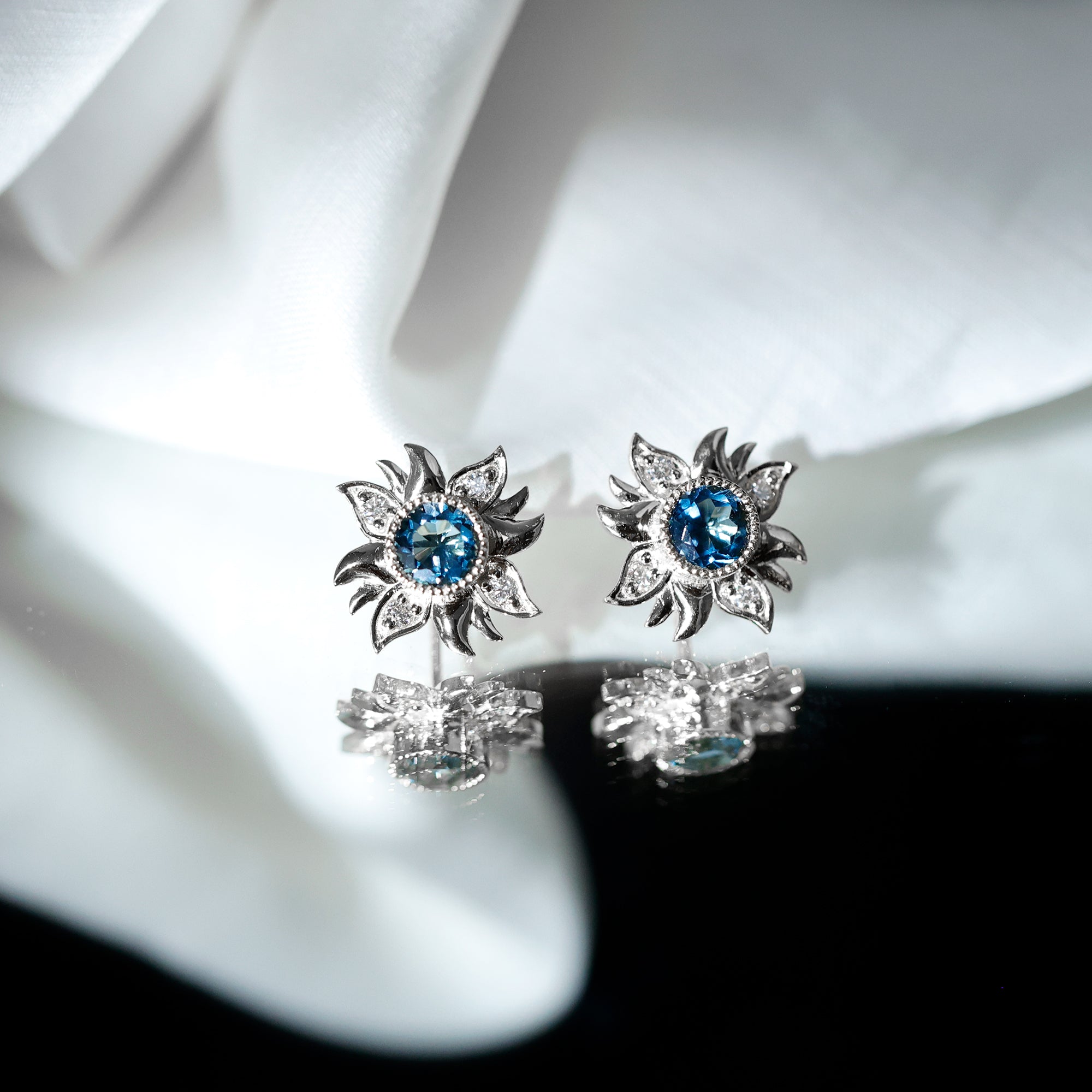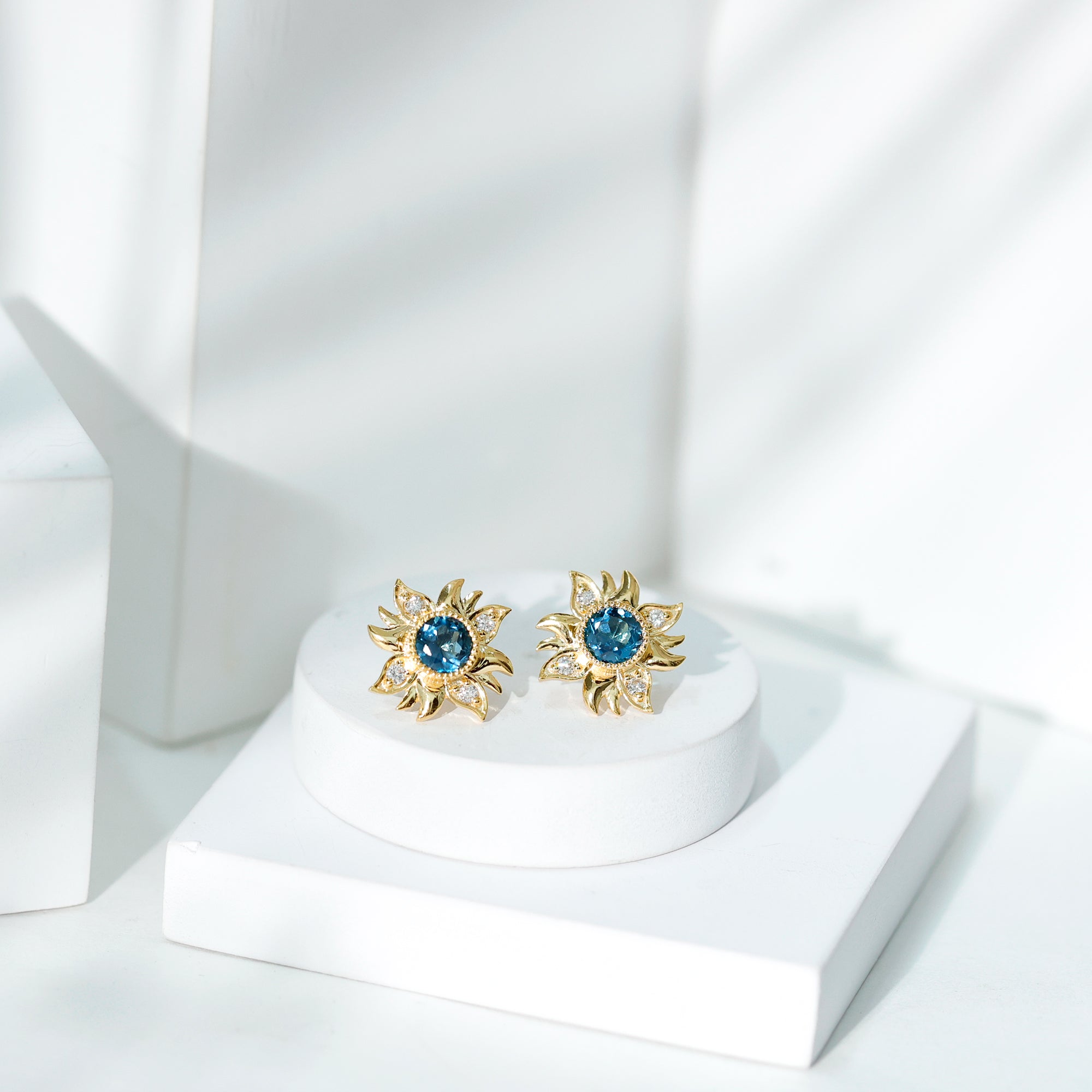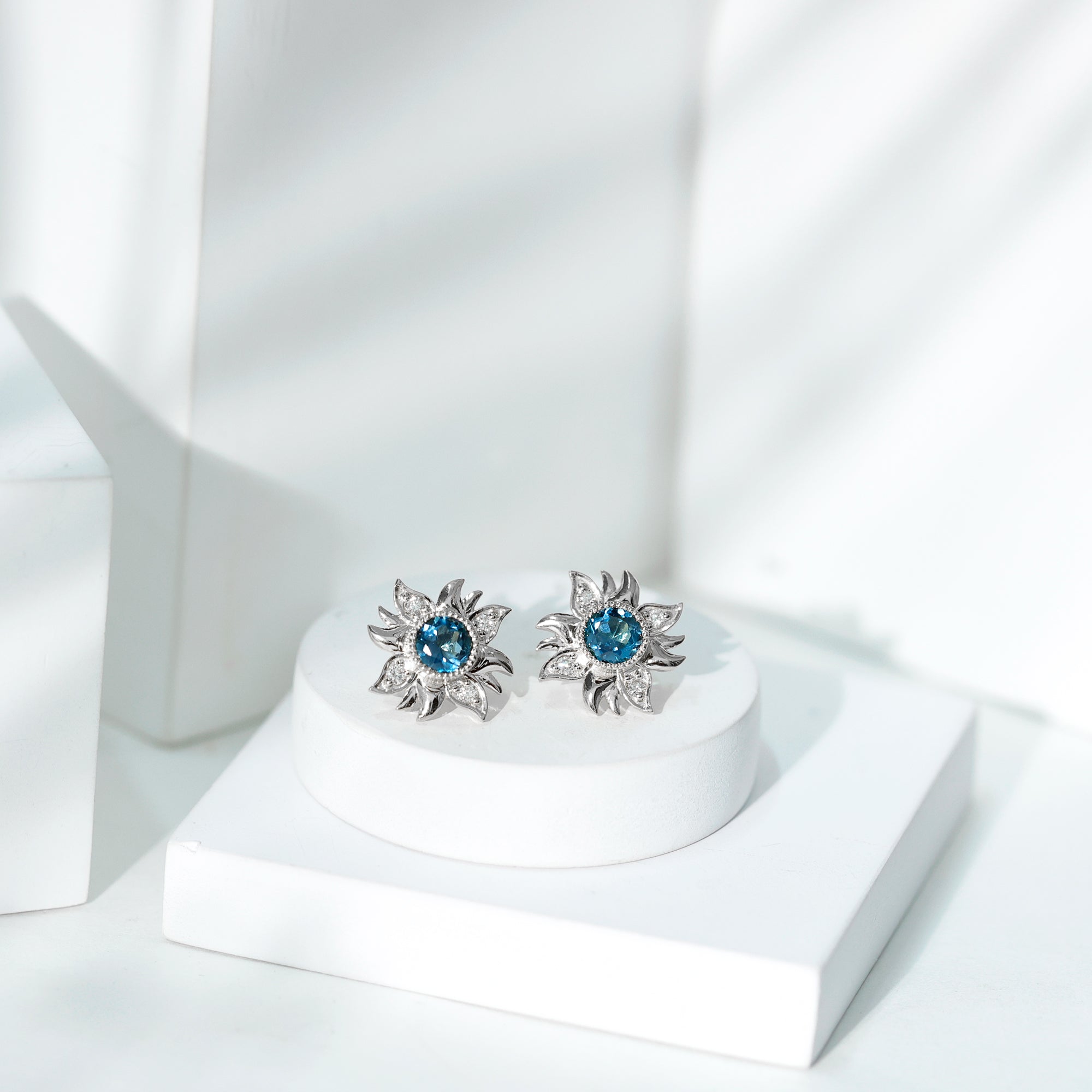 London Blue Topaz and Diamond Flower Stud Earrings