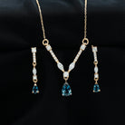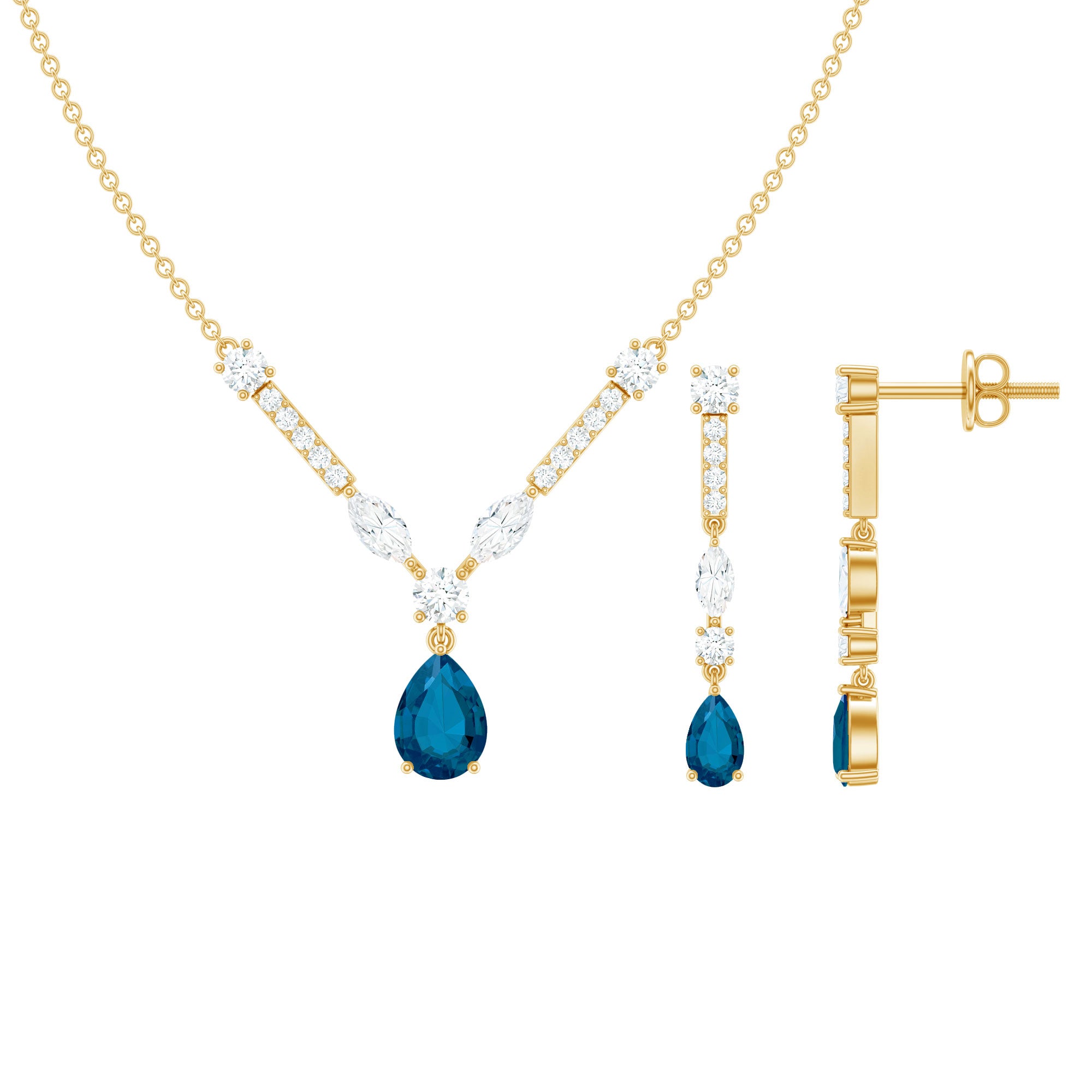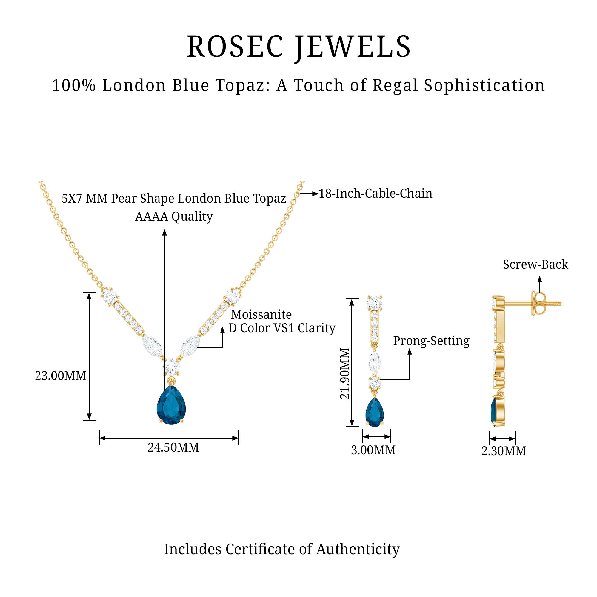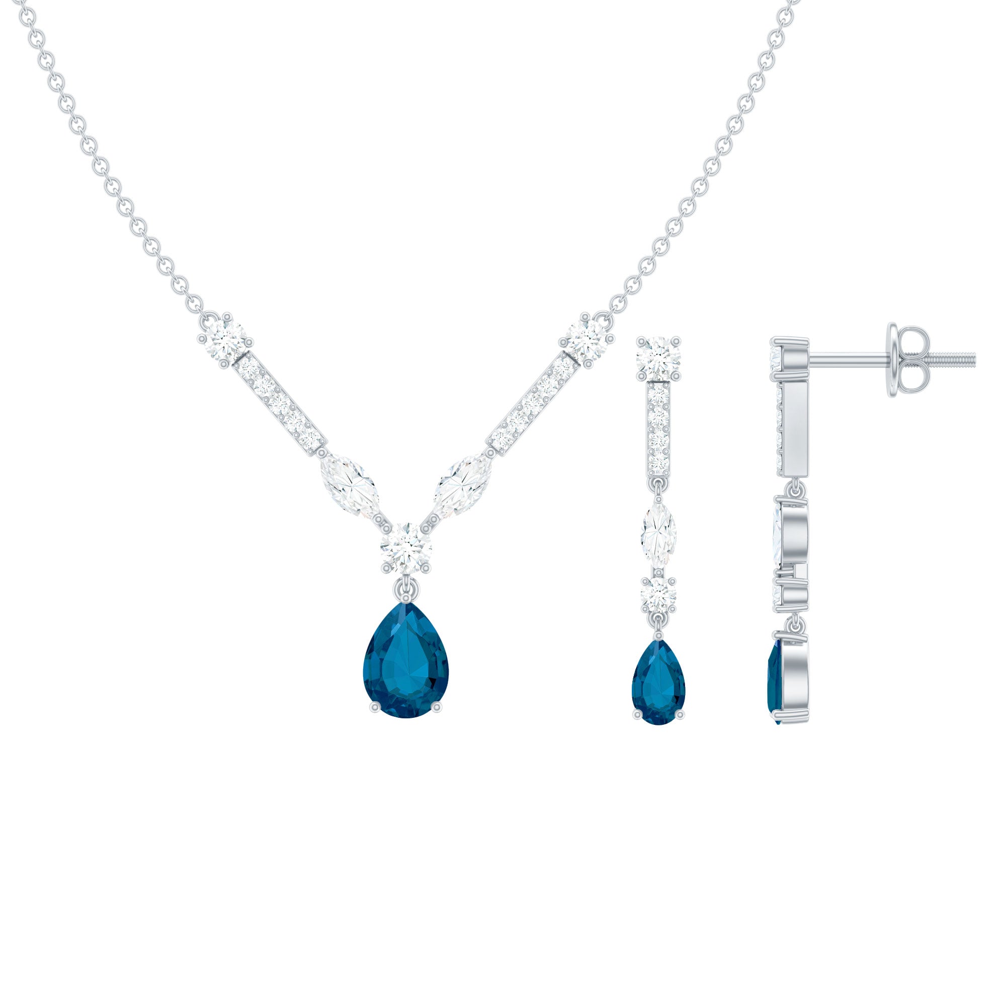 London Blue Topaz and Moissanite Drop Necklace Earrings Set