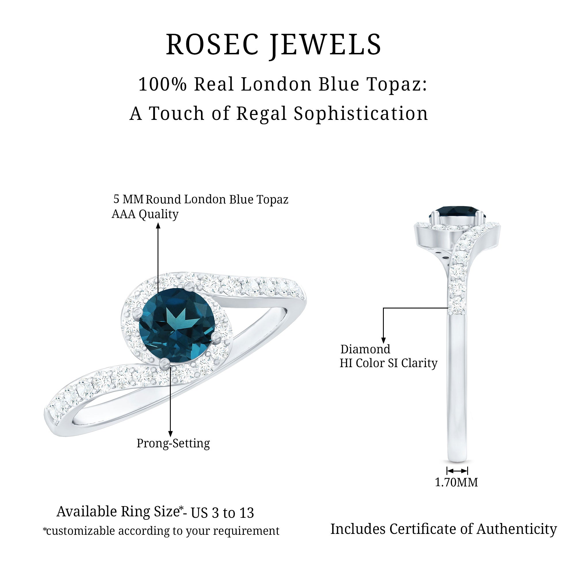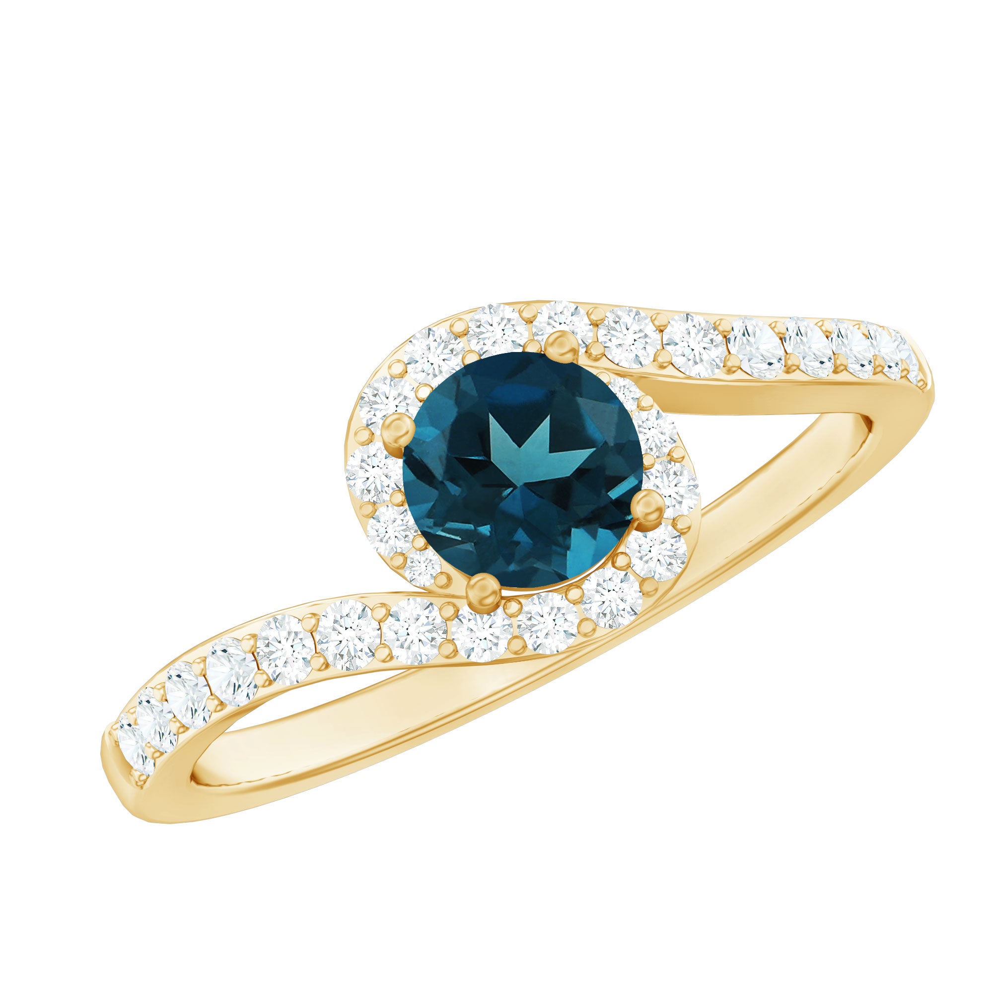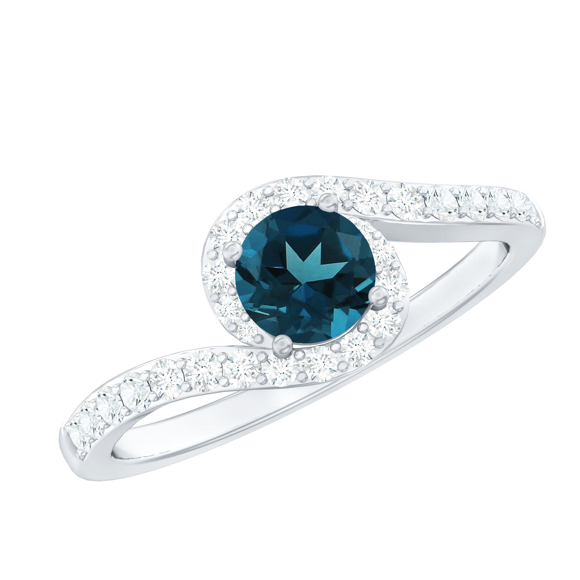 London Blue Topaz Bypass Promise Ring with Diamond Halo
