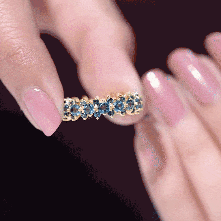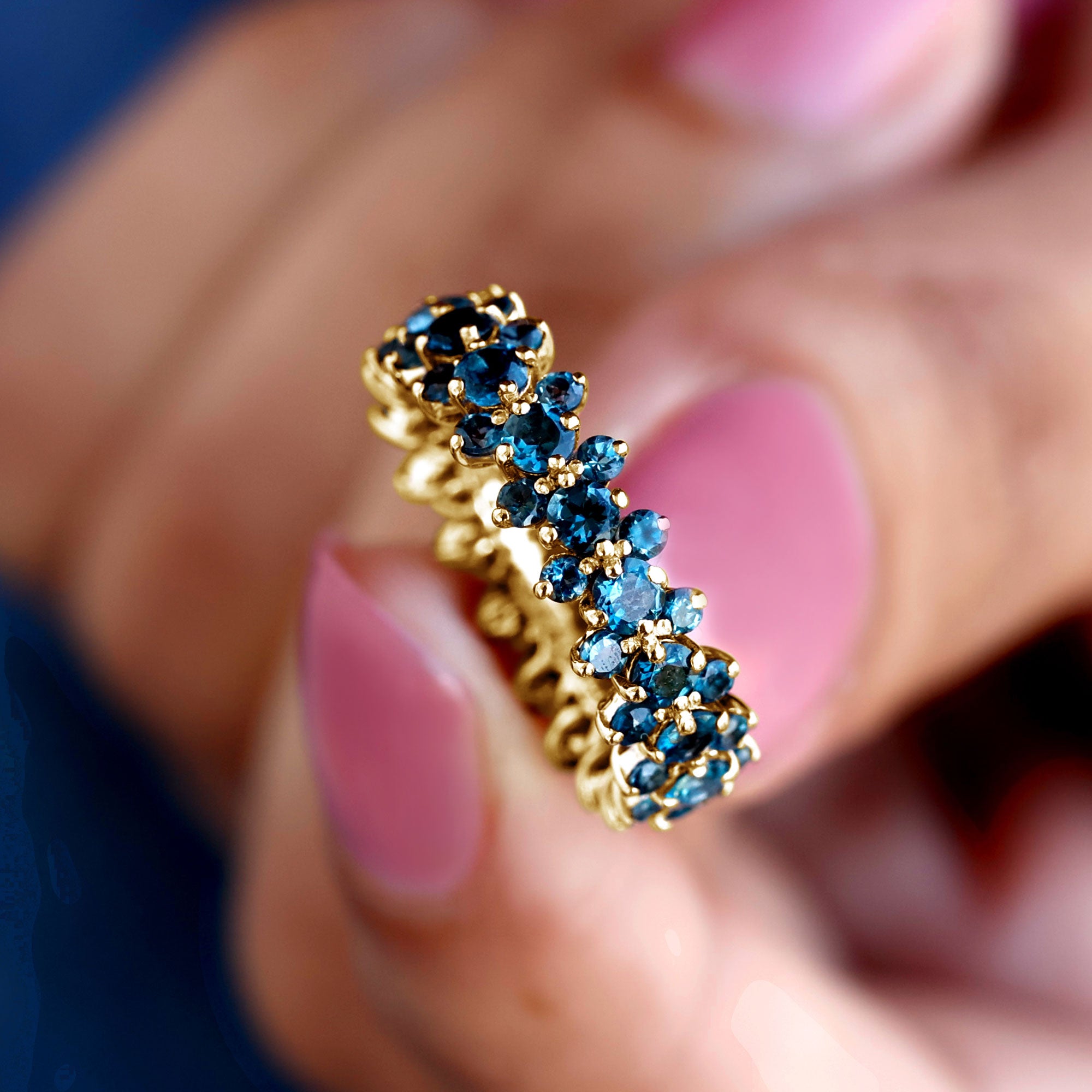 Elevate your jewelry collection with a touch of romance and sophistication through our stunning London Blue Topaz Eternity Ring. This timeless piece features a continuous array of round-shaped AAA quality London Blue Topaz gemstones. Each stone is securely set in a classic prong setting, allowing its brilliance to shine prominently. The cluster design of this Blue Topaz Wedding Band offers an elegant yet versatile accessory, ideal for adding a splash of color to your daily ensemble or enhancing your outfit for special events. Whether it is worn as an Eternity Wedding Band, an anniversary ring, or a standalone statement piece, its intricate craftsmanship and enchanting color will undoubtedly leave a memorable impression. Emanate uniqueness and capture the spotlight from every angle with this captivating Cluster Eternity Ring. Whether paired with a casual or formal outfit, this Cluster Wedding Band Ring adds a touch of glamour and sophistication to any ensemble, making it the perfect accessory for various occasions. Representing your love, this Topaz Anniversary Ring and encircles the finger in a full eternity design, stirring up feelings of romance and nostalgia. This Eternity Anniversary Band lets you commemorate your union with a symbol of stunning beauty that sparkles more with each glance. Its detailed craftsmanship, when combined, creates a wedding ring that will genuinely connect with you.