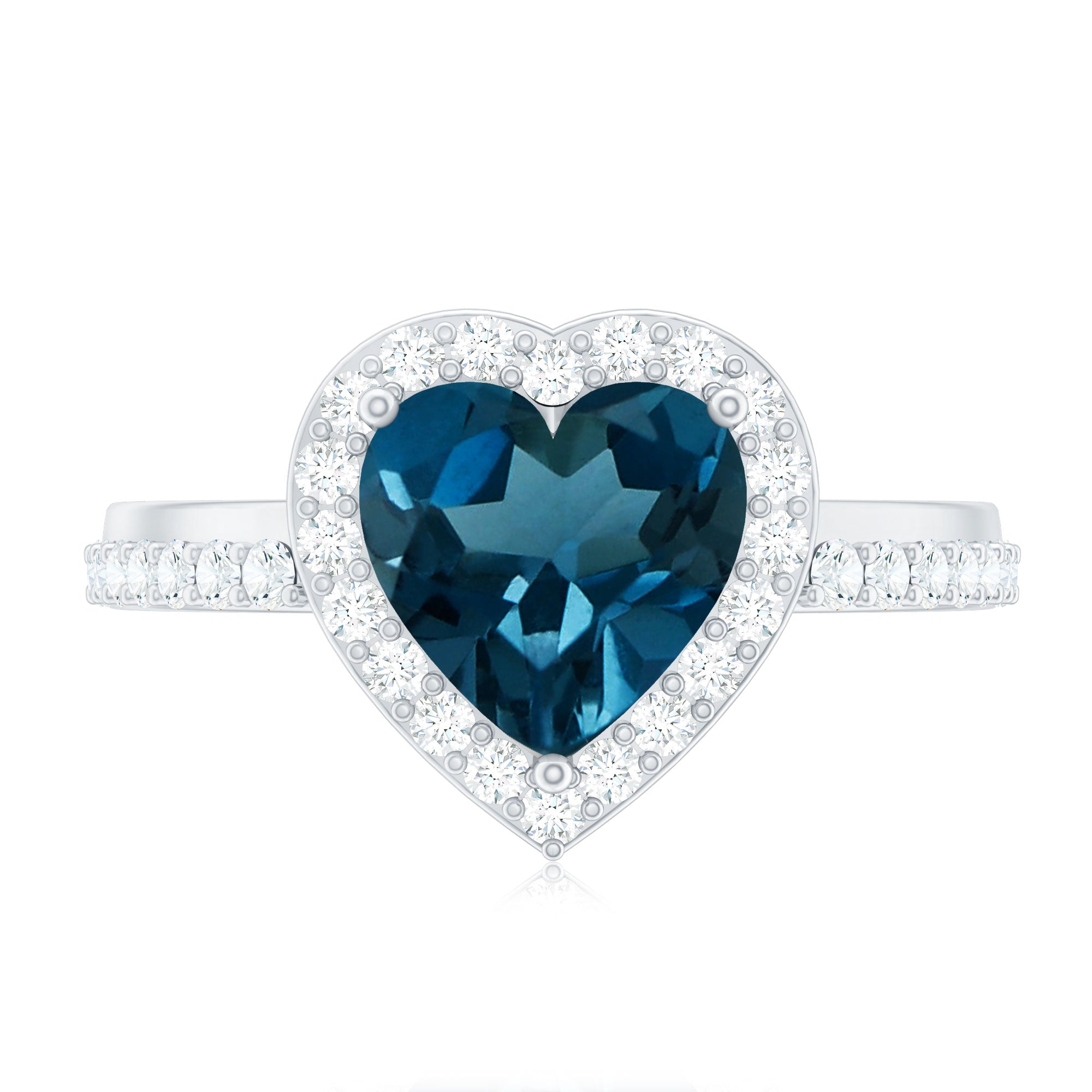 London Blue Topaz Heart Promise Ring with Diamond Halo