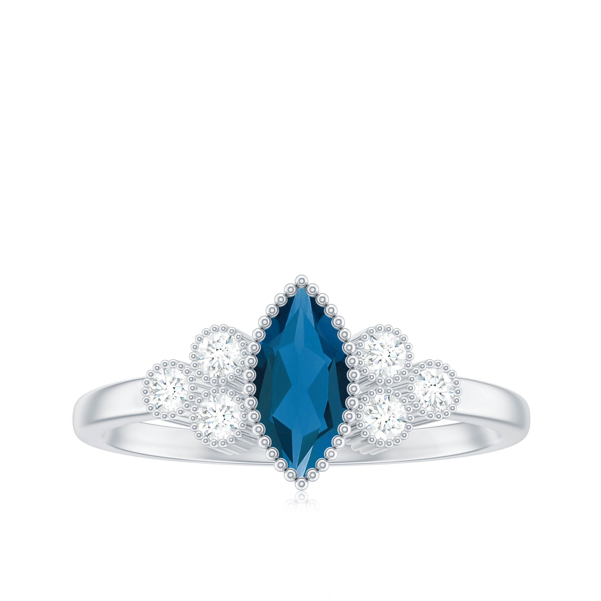 London Blue Topaz Marquise Engagement Ring with Diamond Trio
