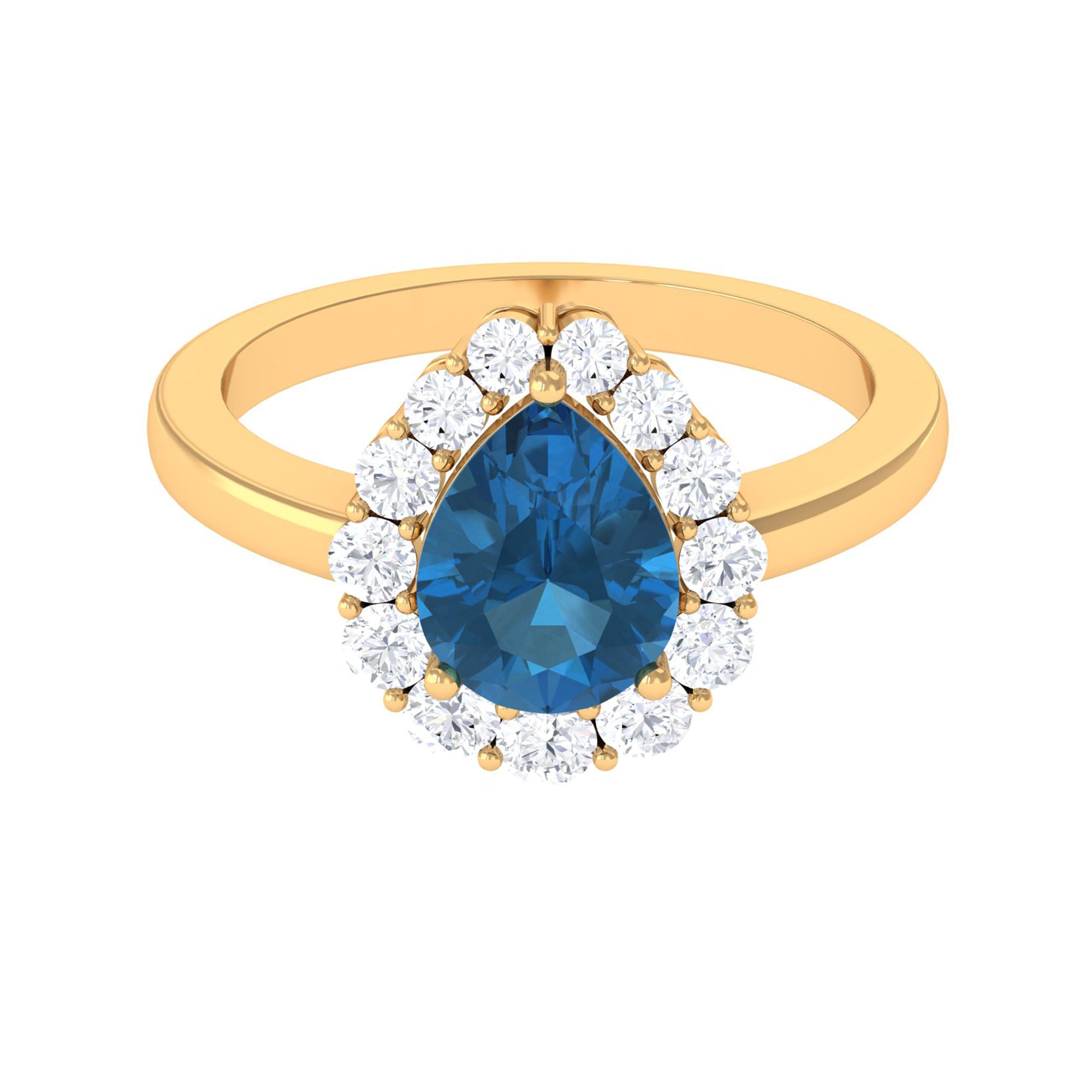 7x10mm Pear Shape London Blue Topaz Halo Engagement Ring with Diamond