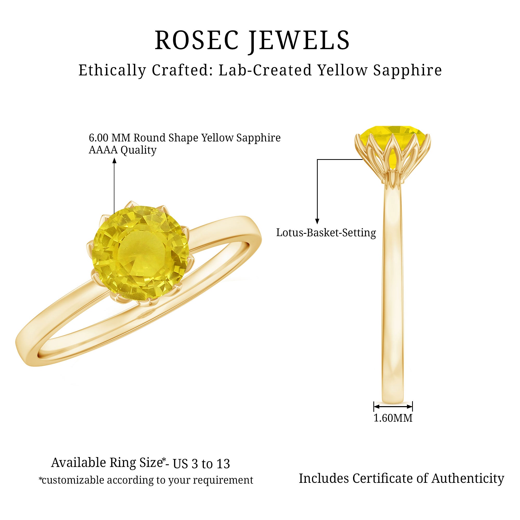 Lotus Basket Set Created Yellow Sapphire Solitaire Ring