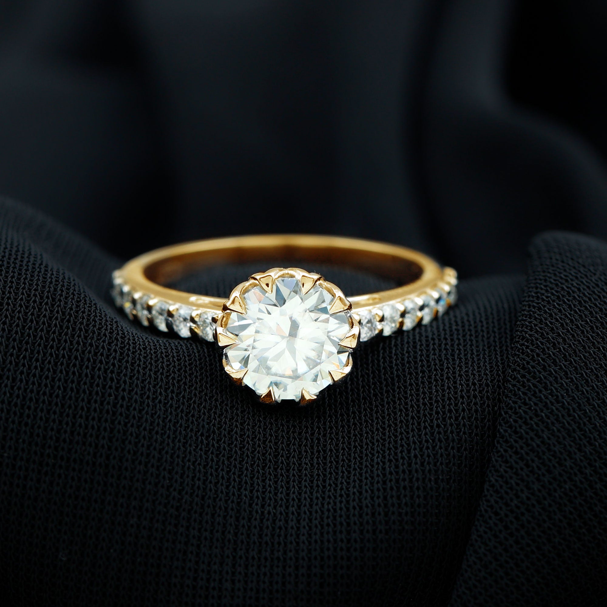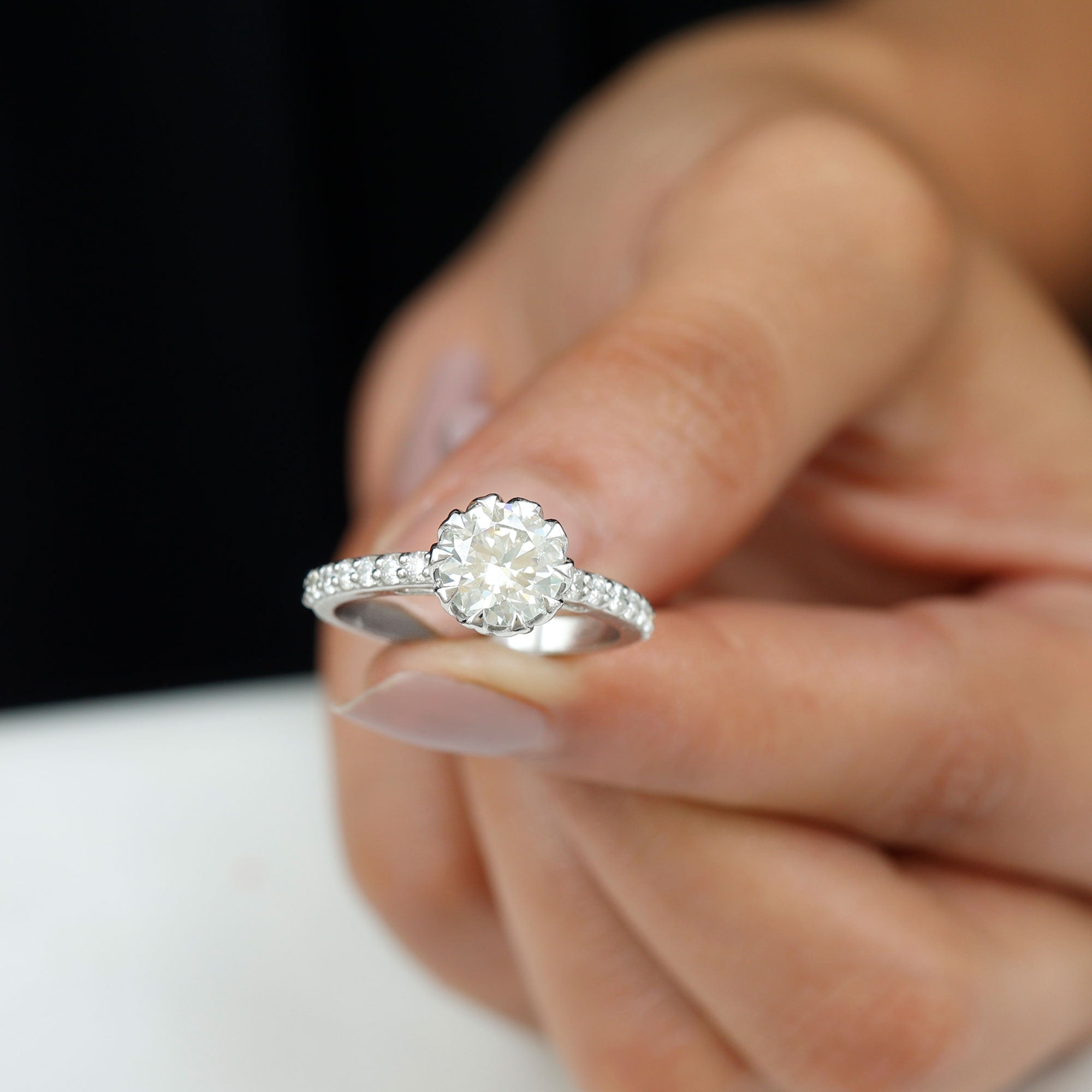 Lotus Basket Set Moissanite Engagement Ring with Certificate
