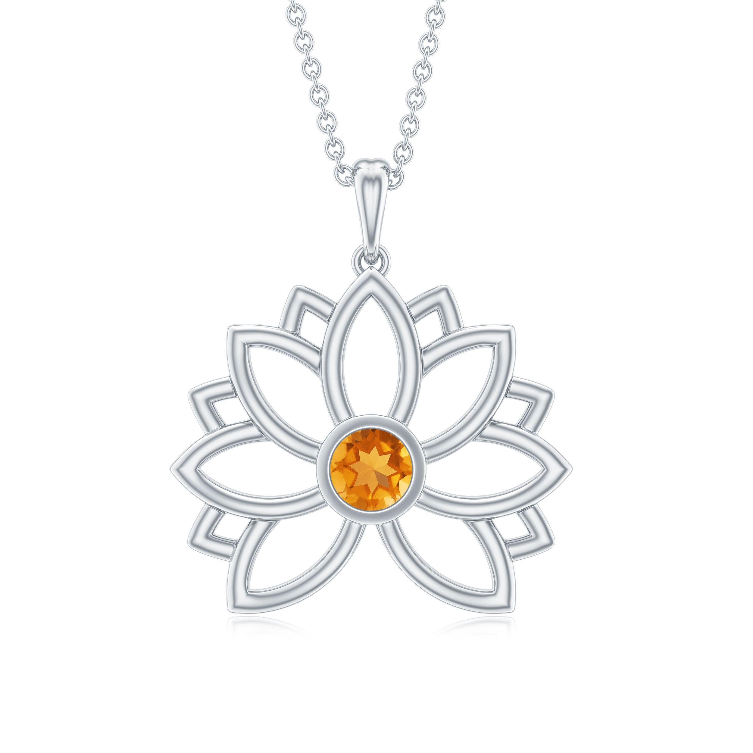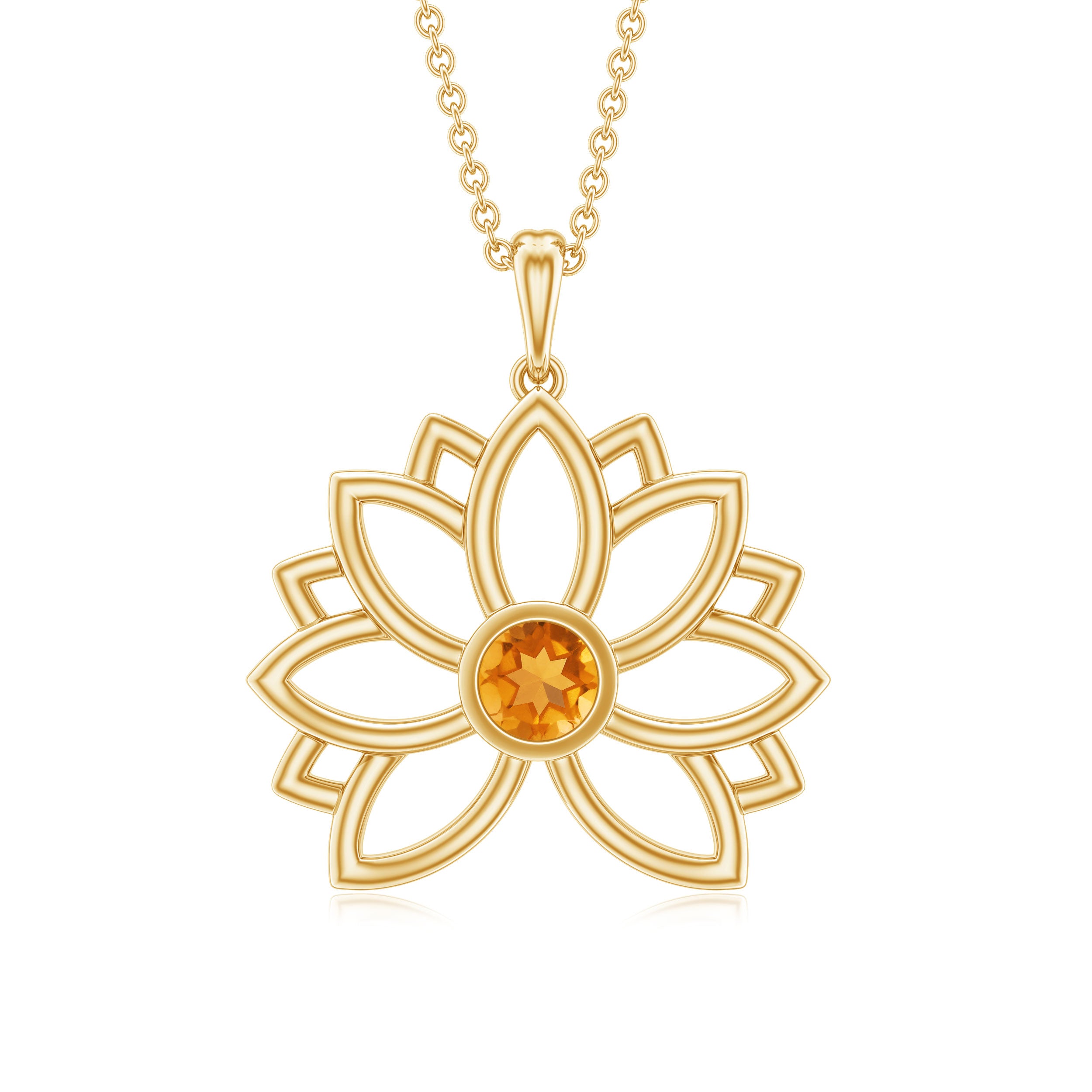 Lotus Flower Pendant with Bezel Set Citrine Solitaire