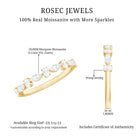 This gorgeous Moissanite Eternity Band perfectly blends elegance with simplicity. It is made for the woman who wants a touch of sparkle in her daily accessories. This Half Eternity Ring features oval and marquise cut moissanite stones, arranged alternately in secure prong setting to create a modern uneven design. You can wear this Moissanite Stackable Ring on its own for a chic and sophisticated look, or stack it with another ring to craft a unique style. The moissanite stones boast D Color and VS1 Clarity, giving you the same brilliance and durability as mined diamonds, but at a more affordable price. Whether you are celebrating a wedding, an anniversary, or just heading to a formal event or casual dinner, this Moissanite Anniversary Ring offers the perfect mix of simplicity and timeless elegance. This Moissanite Wedding Band comes with a certificate of authenticity and a signature jewelry box, keeping your ring safe when it is not being worn. Plus, with options for customizing ring size, metal color, and metal purity, you can make this Eternity Wedding Band truly unique.