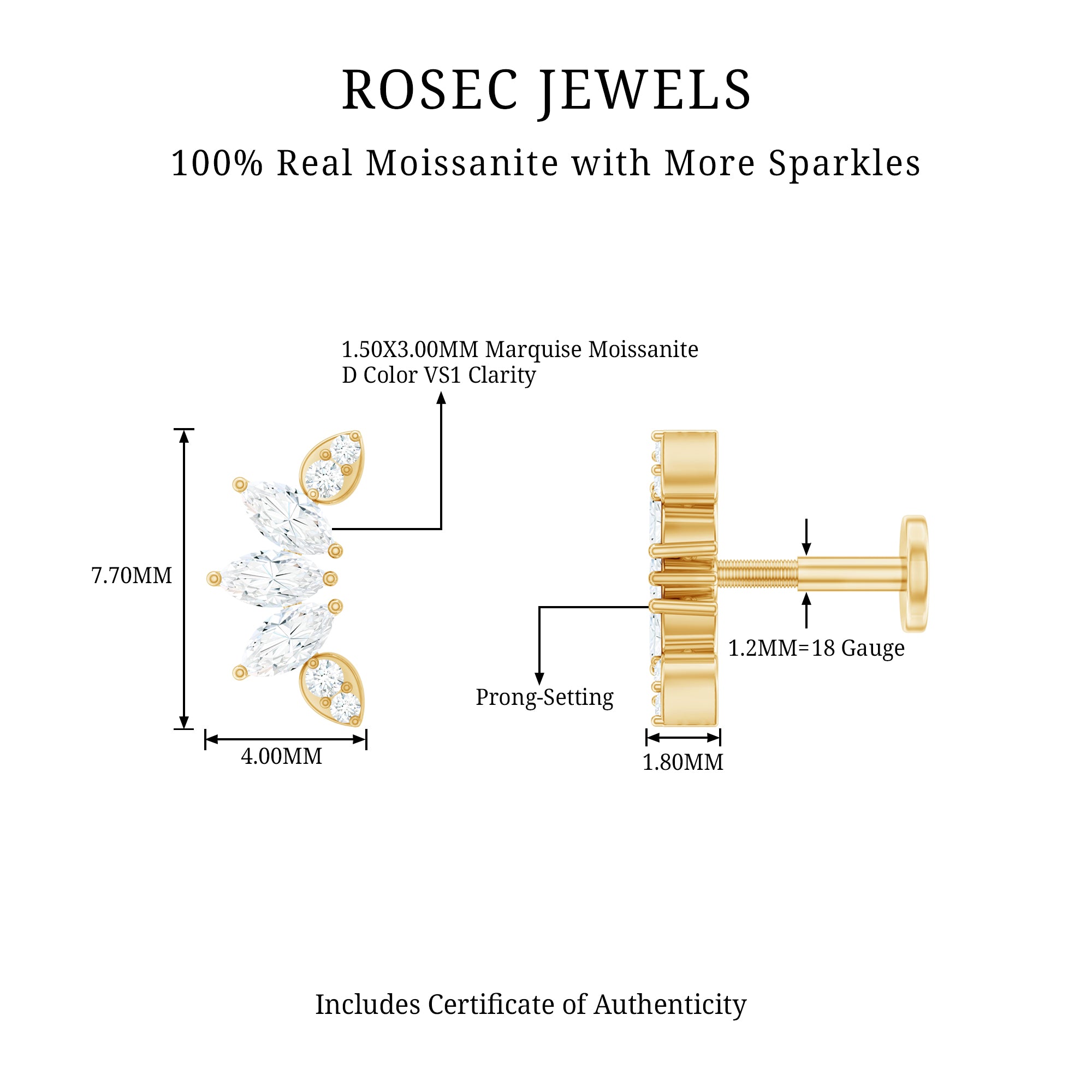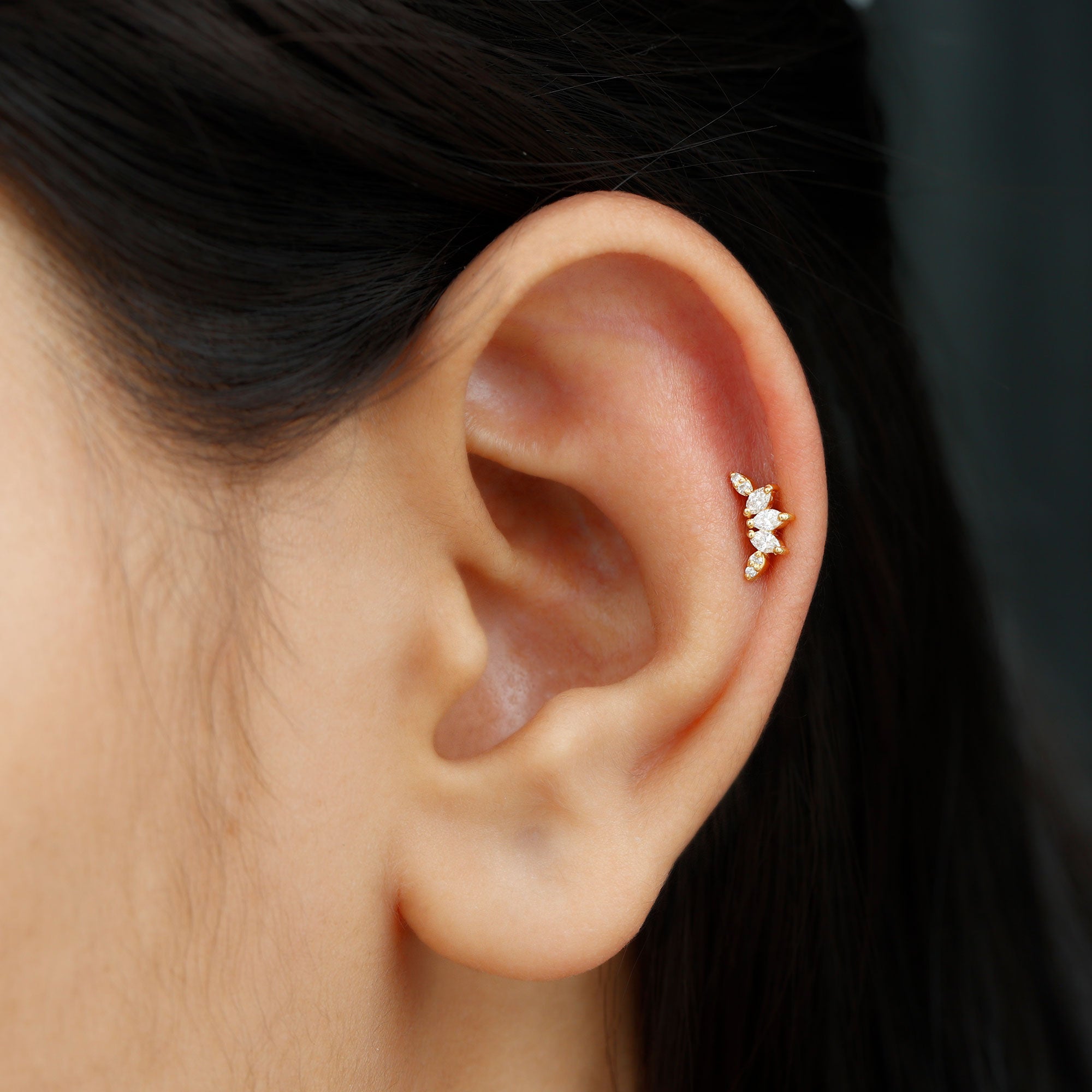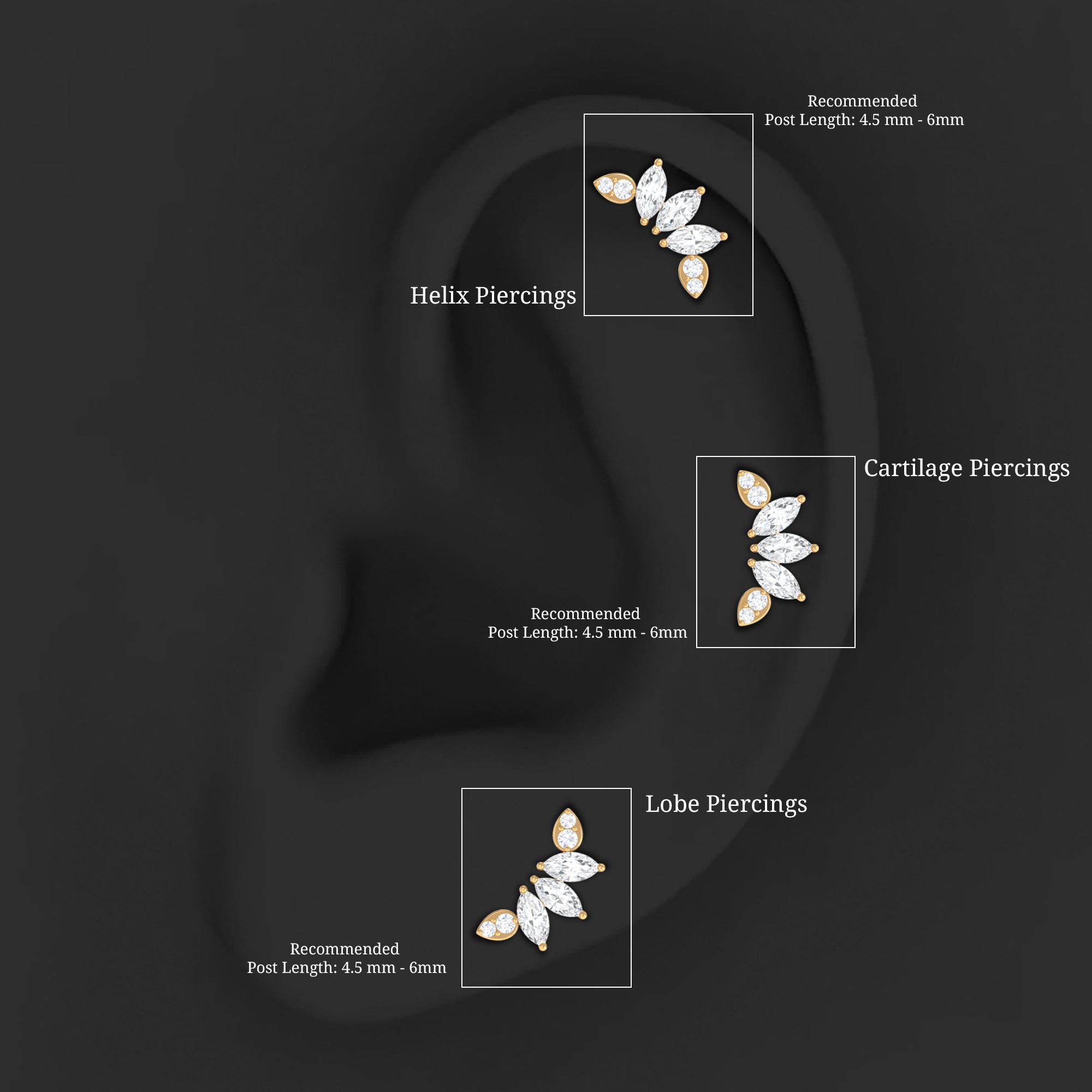 Marquise and Round Cut Moissanite Curved Leaf Helix Earring