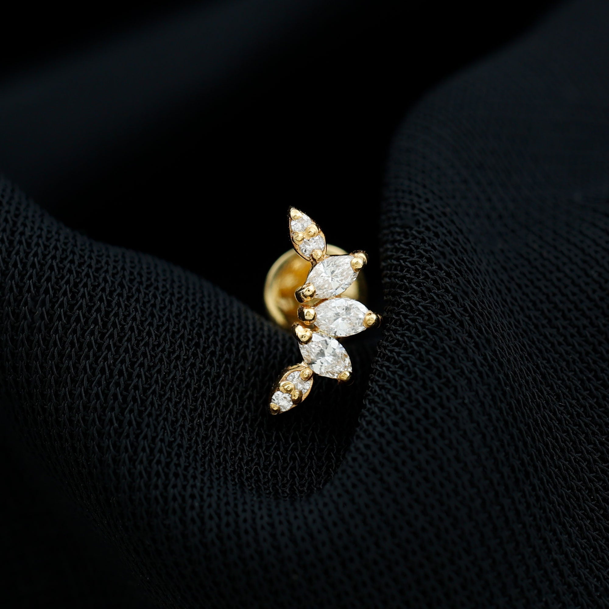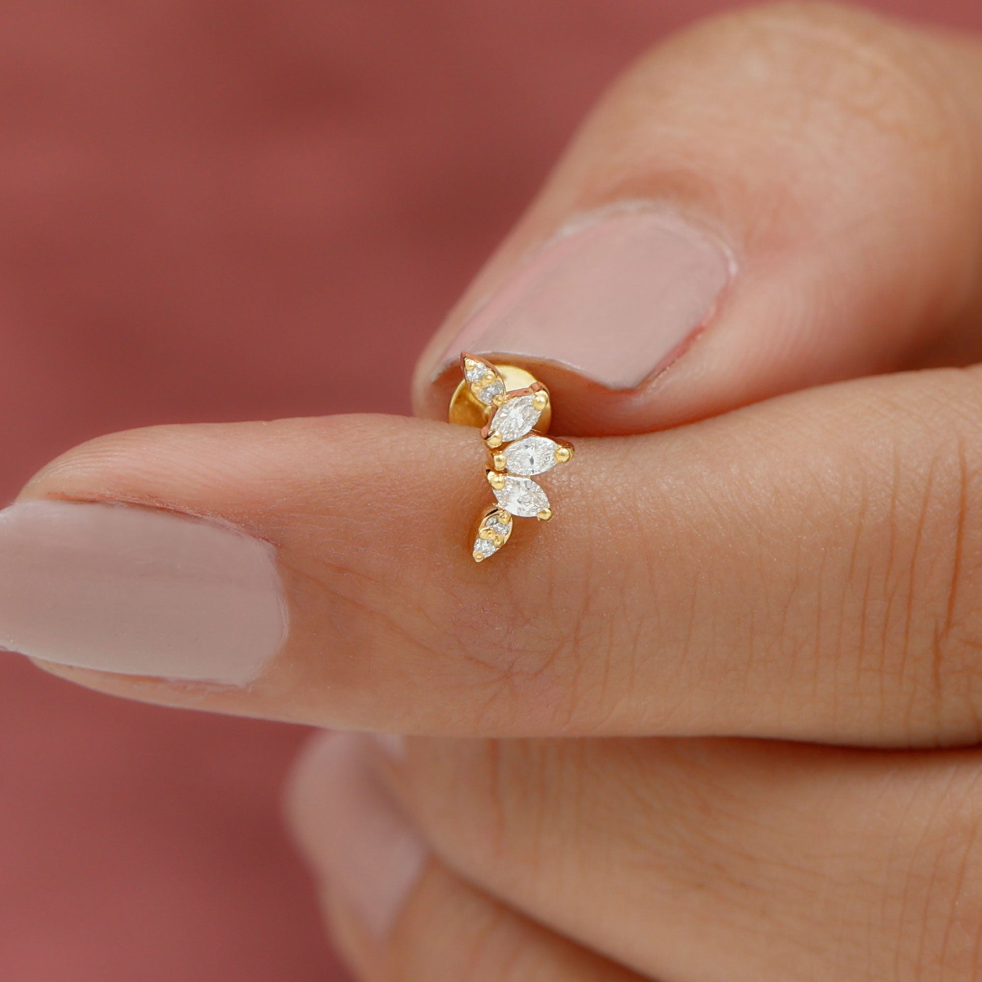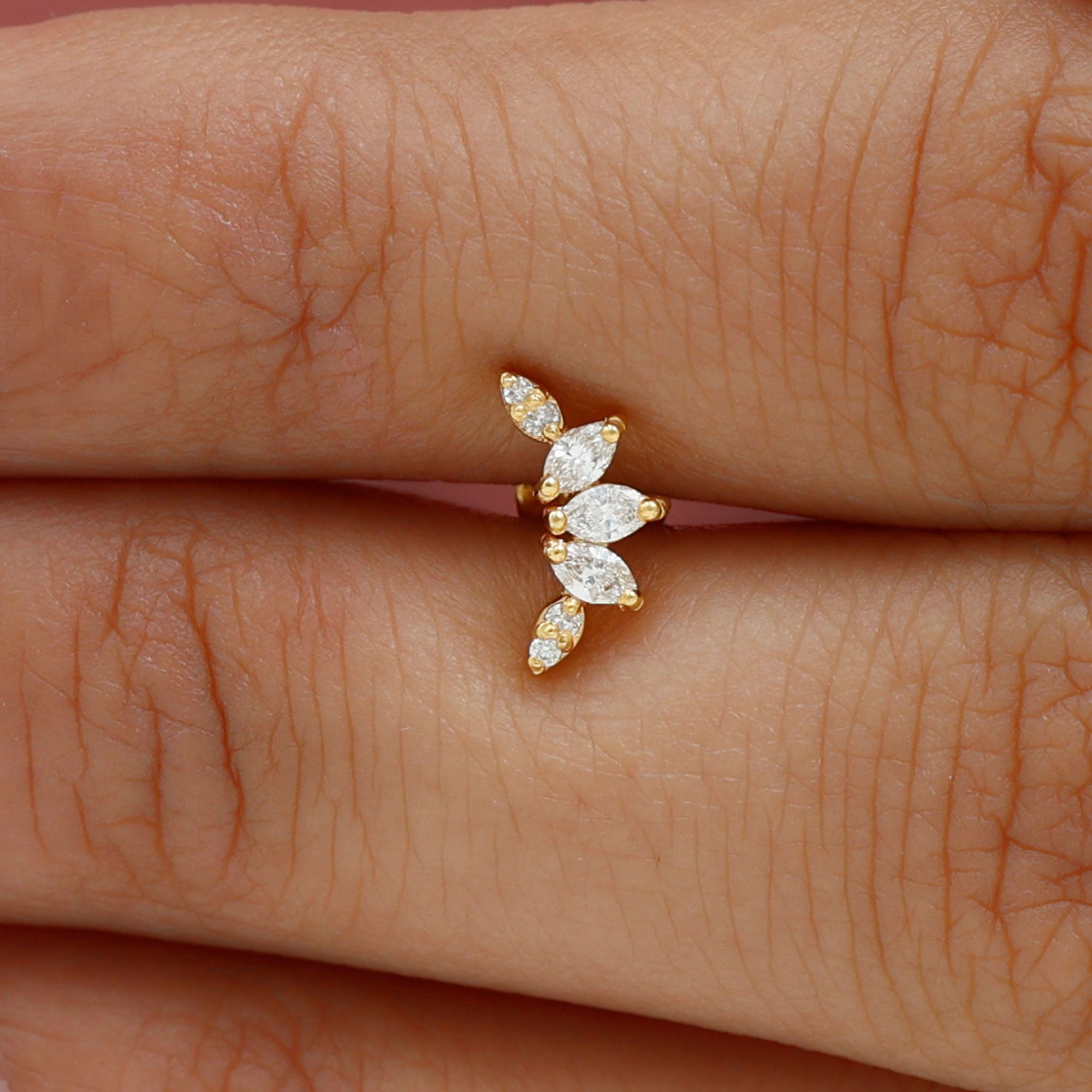 Marquise and Round Cut Moissanite Curved Leaf Helix Earring