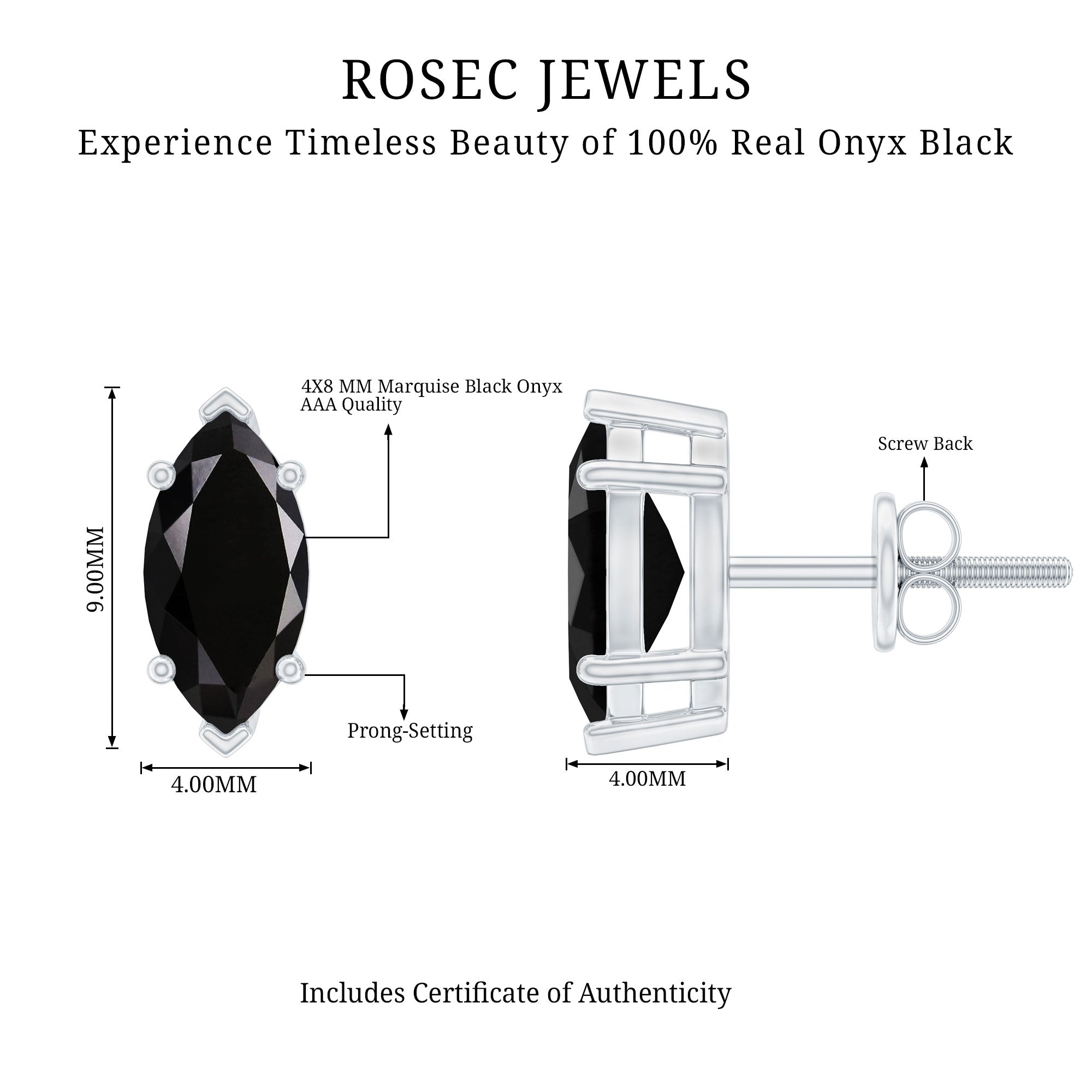 Genuine Black Onyx Marquise Stud Earrings with Certificate