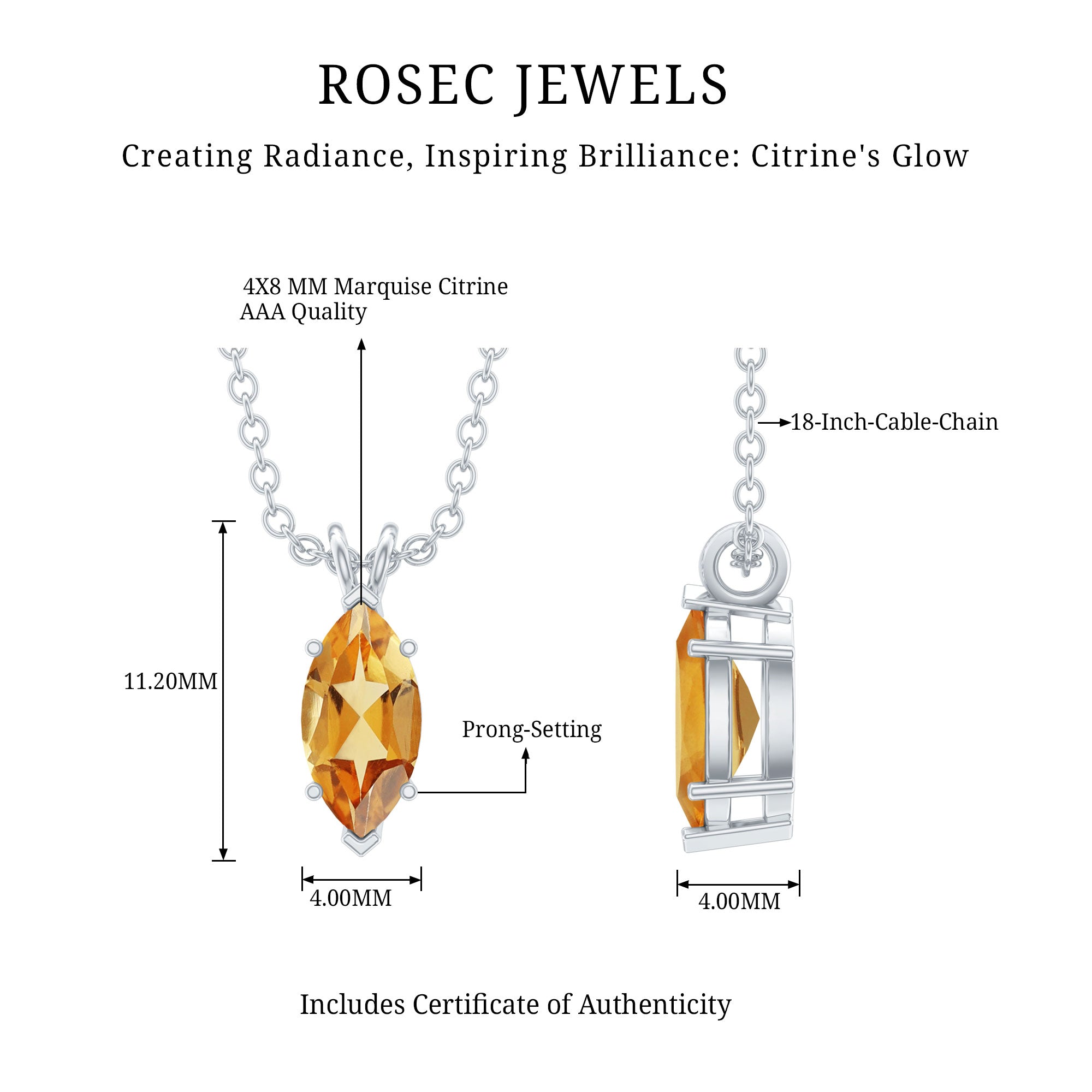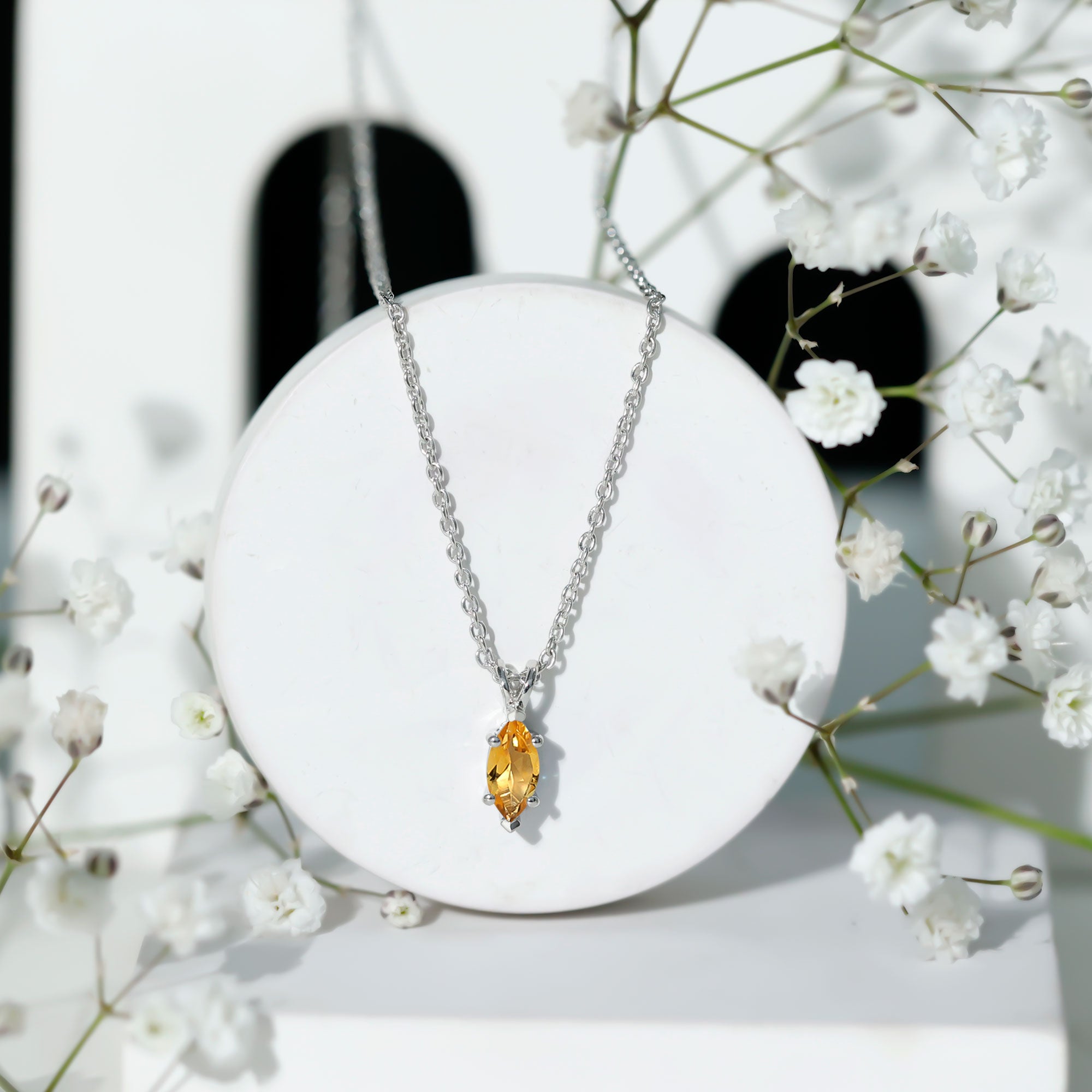 Marquise Cut 4X8 MM Citrine Solitaire Necklace with Silver Chain