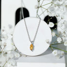 This Citrine Pendant Necklace is the classic choice for a day-to-day styling, precisely crafted with 14K White Gold Plated Silver. The Solitaire Pendant Necklace features a 4X8 MM Marquise Shape Citrine securely placed in Prong Setting. This Marquise Shape Pendant is suspended with a rabbit ear bail and dangles in a silver cable chain which makes it beautifully sit on the neckline and completes your day-to-day look. An ideal November Birthstone Necklace Pendant for people with Zodiac Scorpio.