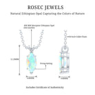 Adorn your neckline with this Ethiopian Opal Pendant, which is precisely crafted with 14K White Gold Plated Silver. The pendant features a 4X8 MM Marquise Shape Ethiopian Opal securely placed in Prong Setting. This Solitaire Pendant beholds a dazzling shimmer of AAA Quality Ethiopian Opal and is accentuated with a Rabbit Ear Bail. This pendant can be a perfect gift for your special one on their birthday. This Opal Pendant dangles in a sturdy cable chain that will perfectly complete the look for the special day.