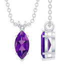 Marquise Cut Amethyst Solitaire Pendant Necklace with Silver Chain