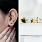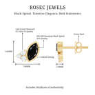 Designed for those who appreciate minimalism with a statement, these Black and White Earrings feature a sleek 3X6 MM marquise cut Black Spinel held by bezel setting and curated in 14k yellow gold plated sterling silver. To the side of each earring, a trio of sparkling lab grown diamonds is delicately arranged to bring contrast and light. These Black Spinel and Diamond Earrings are crafted for comfort and lasting wear, secured with screw back closures to stay in place from day to night. Whether you are heading into a business meeting, a dinner date, or simply elevating your casual look, these studs make an effortlessly stylish statement. What makes them even more special? The use of AAA quality Black Spinel paired with EF-VS quality lab grown diamonds, ensures each stone offers exceptional shine, clarity, and ethical craftsmanship. More than just earrings, this pair is a celebration of contrast, confidence, and clean design. Perfect for gifting or keeping, these Black Spinel Earrings suit any occasion and every mood, from subtle edge to everyday glam. Let your style speak volumes with the understated power of Black Spinel.