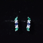 Marquise Cut Created Blue Sapphire and Emerald J Hoop Earrings with Moissanite