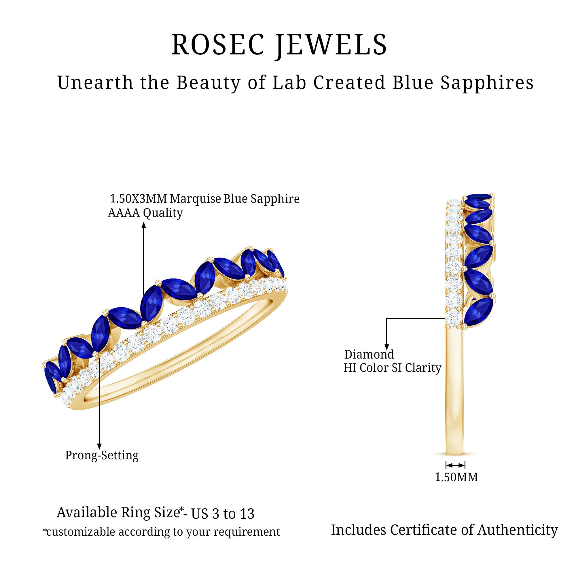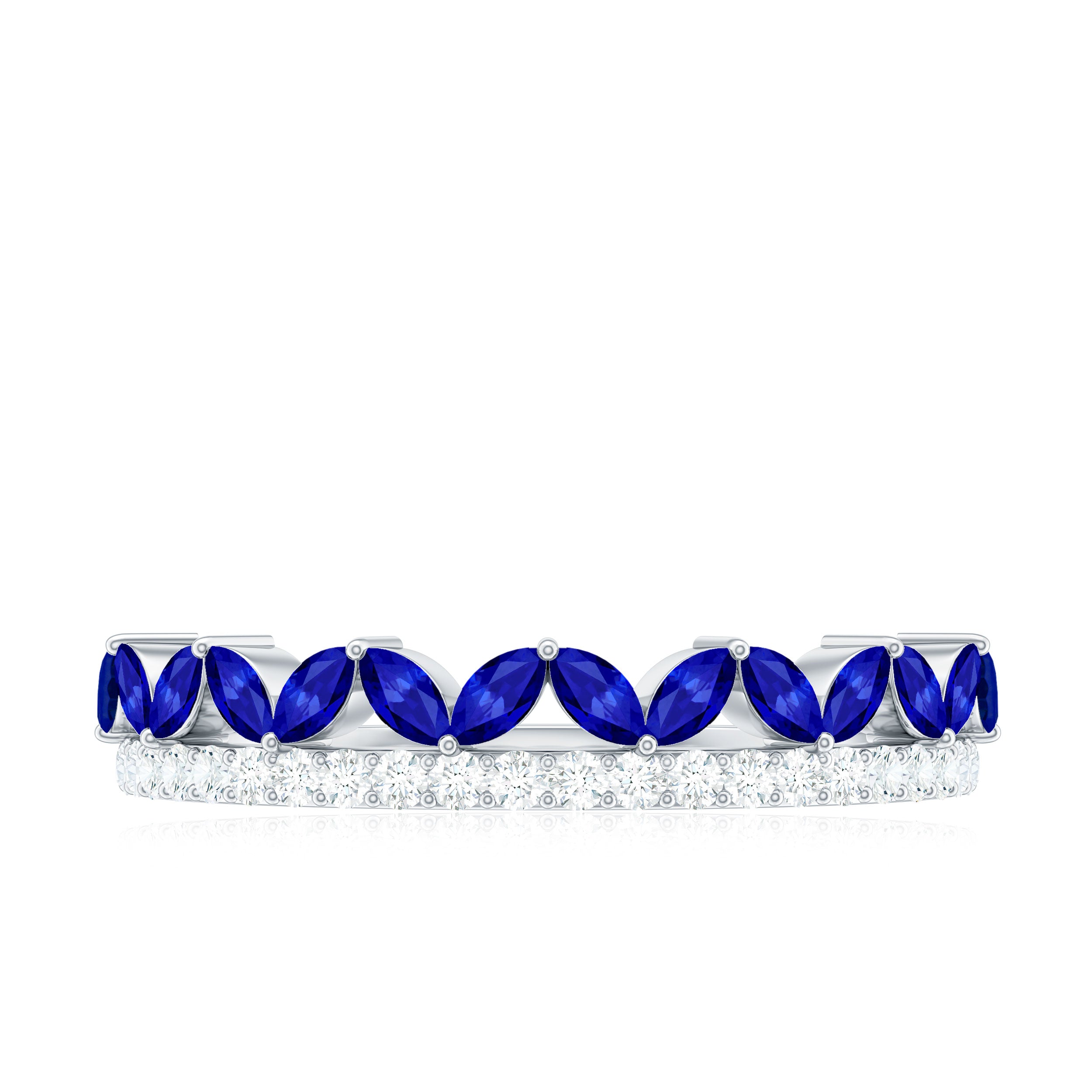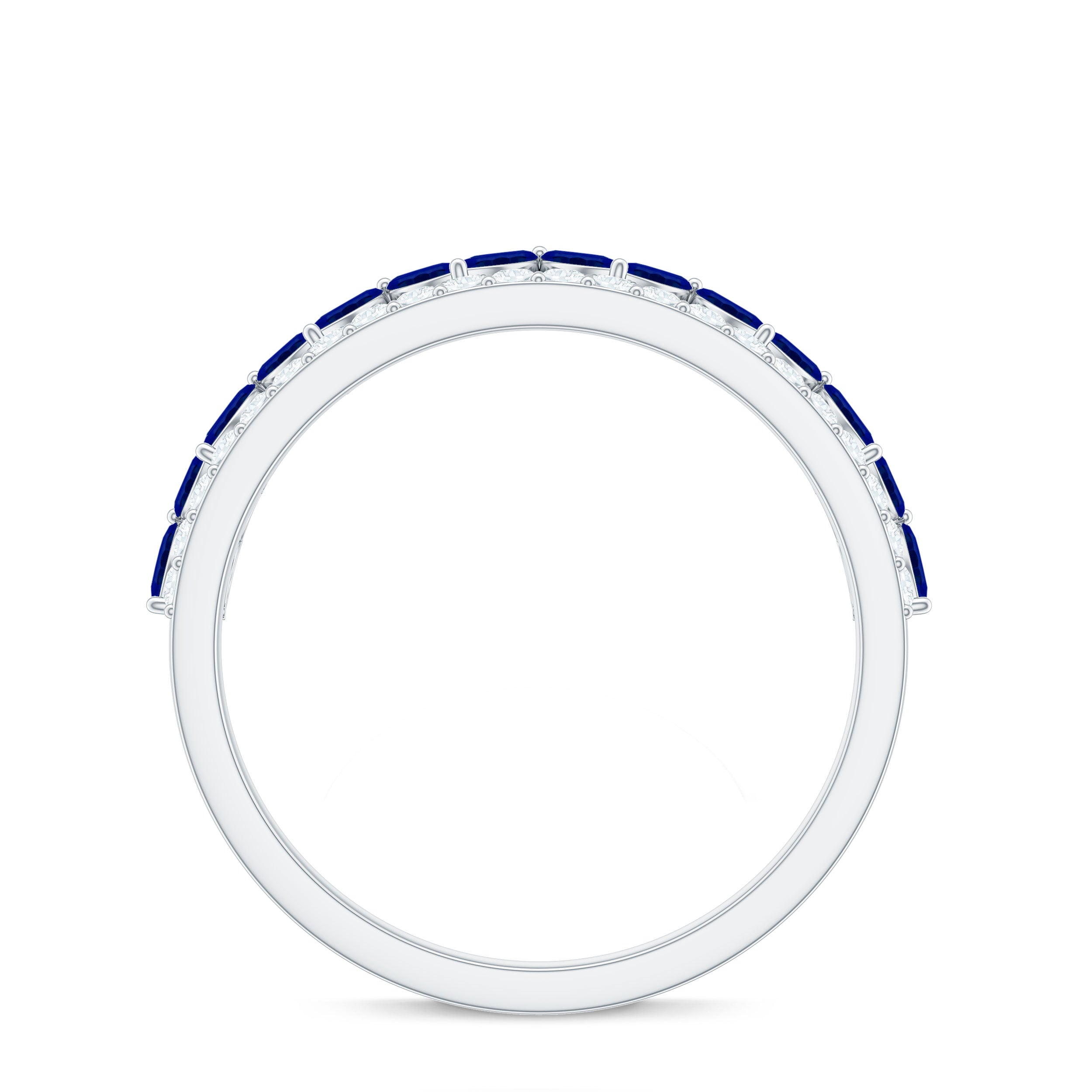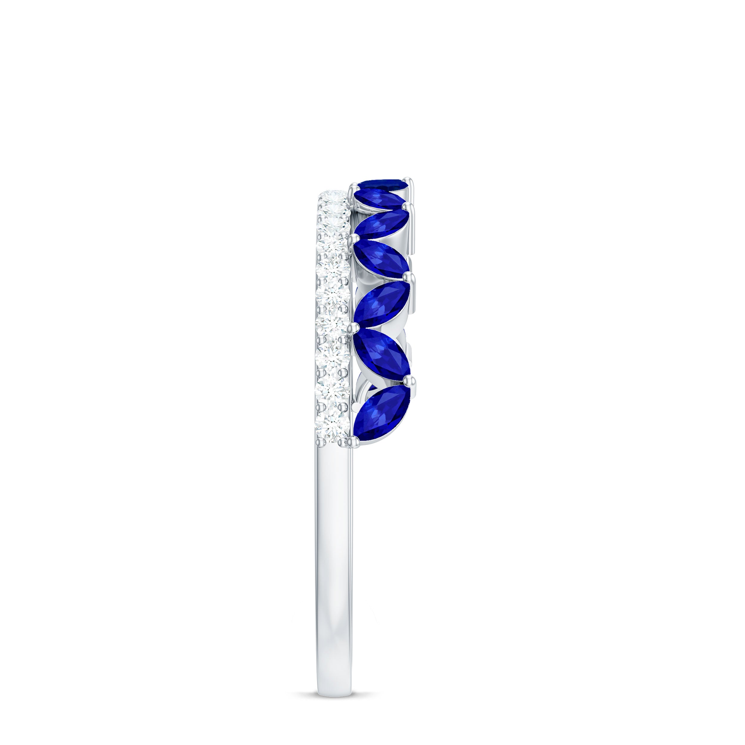 Marquise Cut Created Blue Sapphire Half Eternity Stackable Ring with Diamond