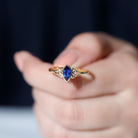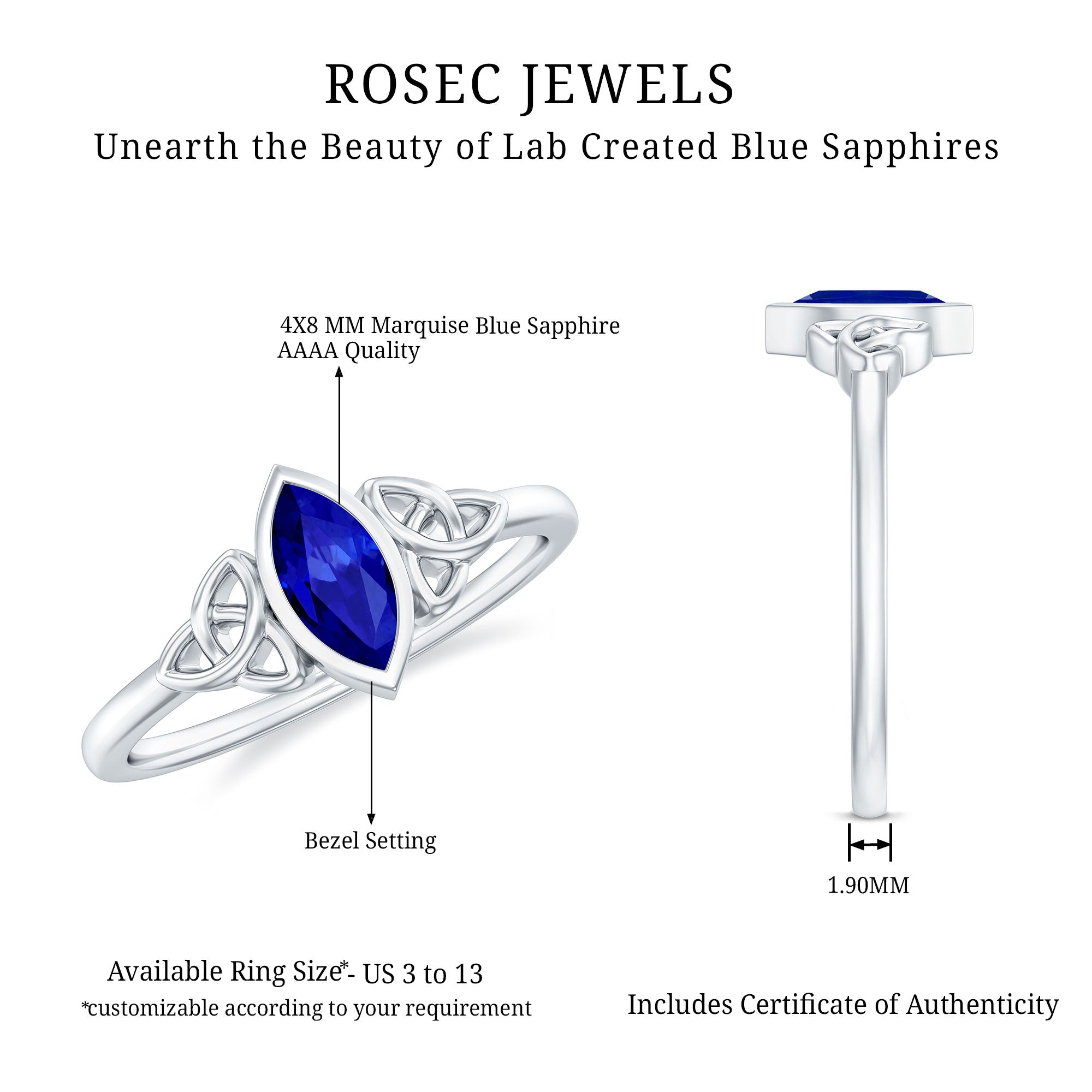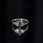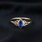This Gold Celtic Ring is perfect for adding some sparkle to your finger. It features a Marquise Cut Created Blue Sapphire in a Bezel Setting that will elevate your fashion game. The 4X8 MM Created Blue Sapphire Solitaire Ring is the perfect way to make that special someone feel truly special.