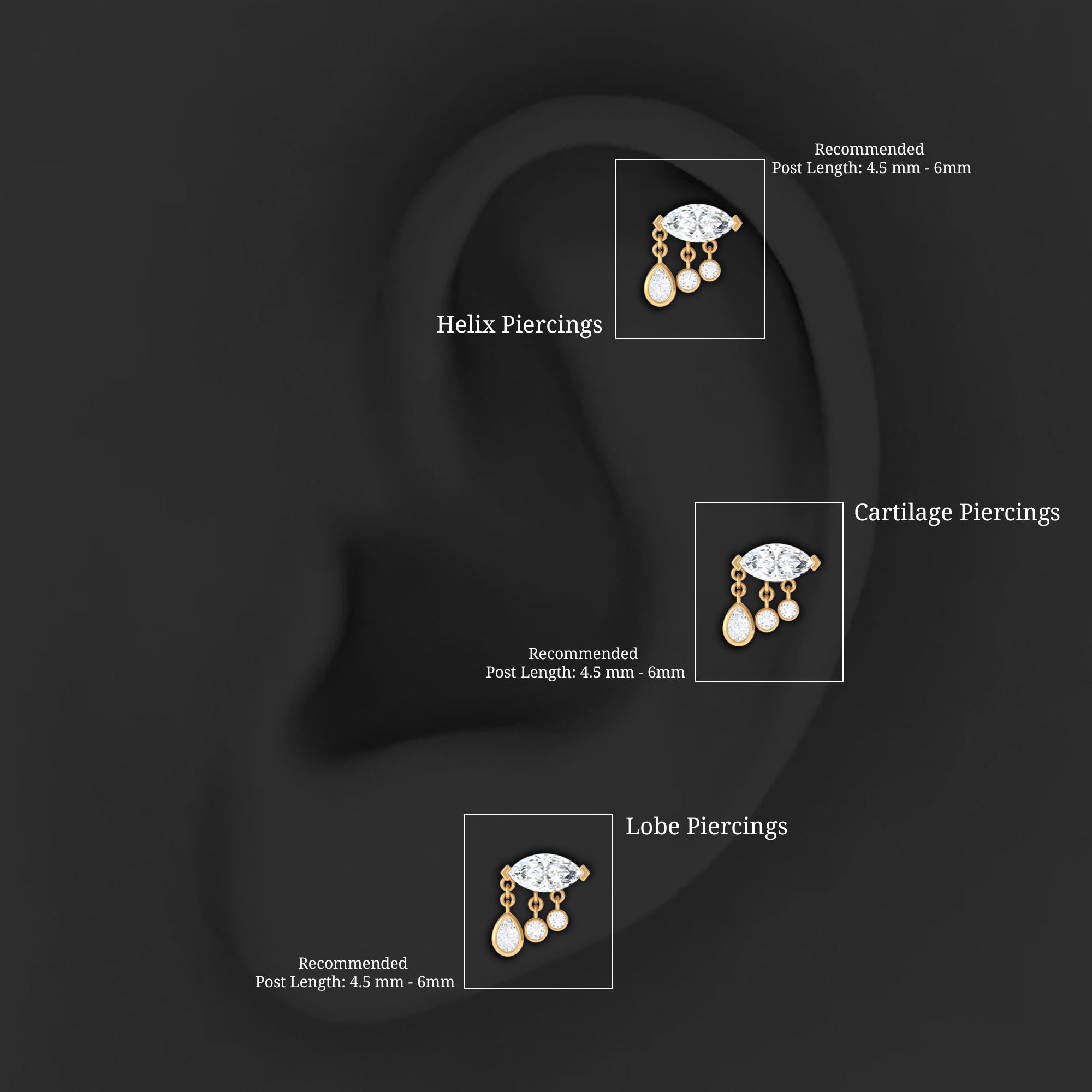 - Amping up your amazing style to the next level with dangling diamonds that swing subtly with every movement, this marquise earring will glam up your ear stack instantly.