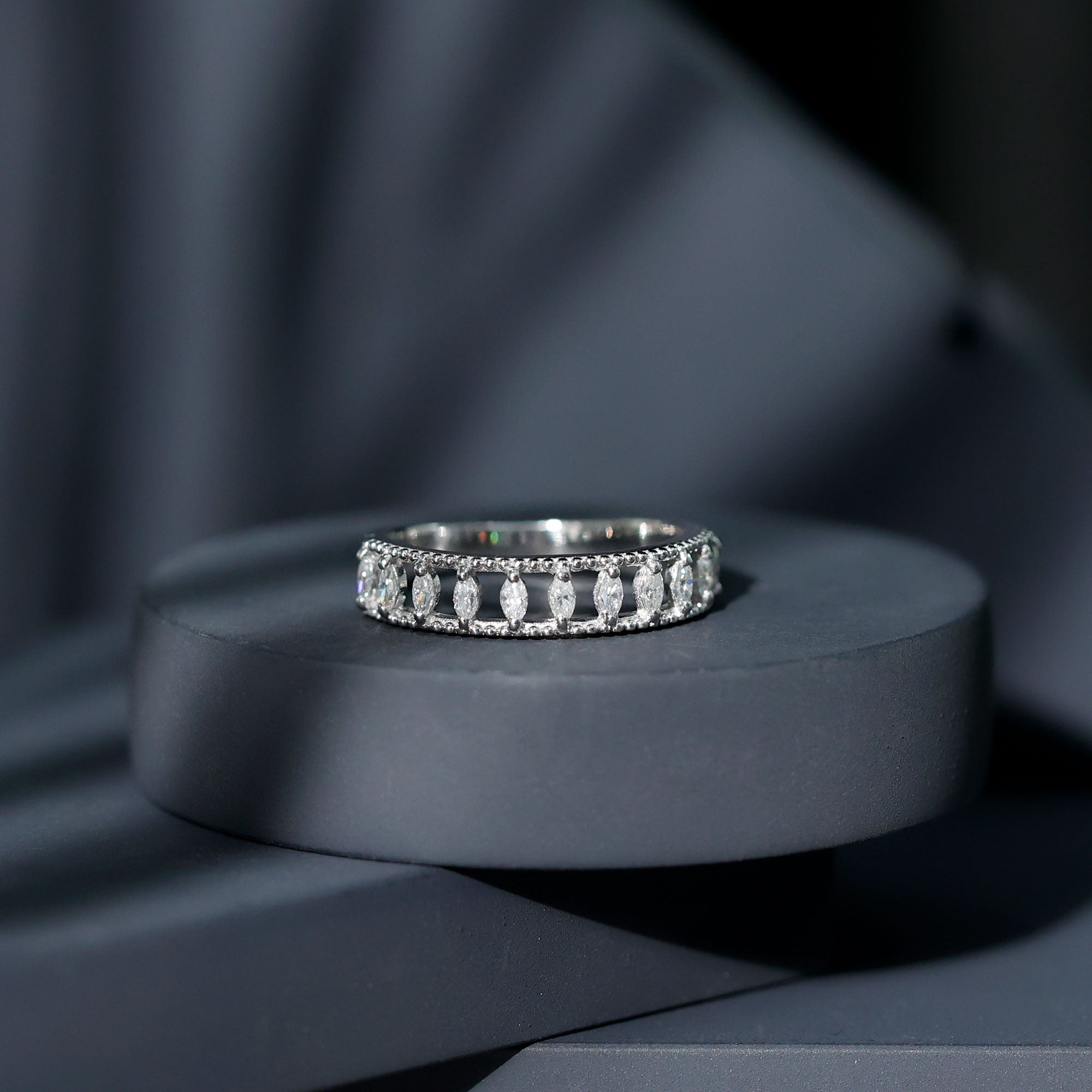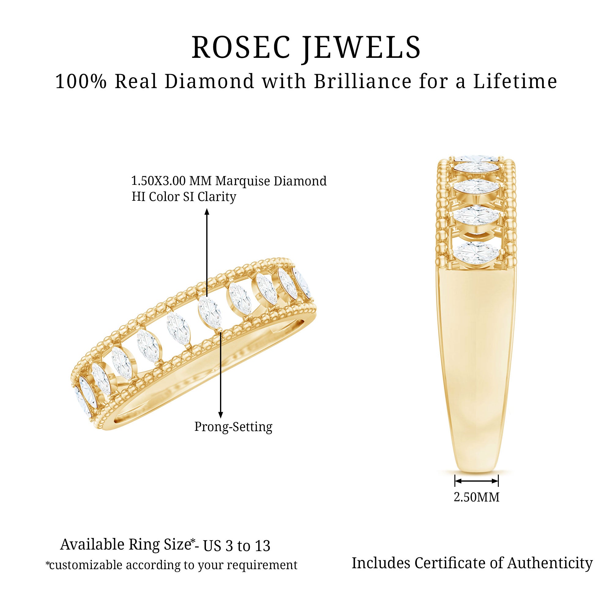 This stunning Diamond Half Eternity Ring features Marquise Cut Diamond secured in Prong Setting spaced out halfway around the band. This Diamond Ring will make for a sweet addition to your jewelry collection. Surprise your beloved one by getting this unique Marquise Diamond Ring as a gift for her and wait for her priceless smile.
