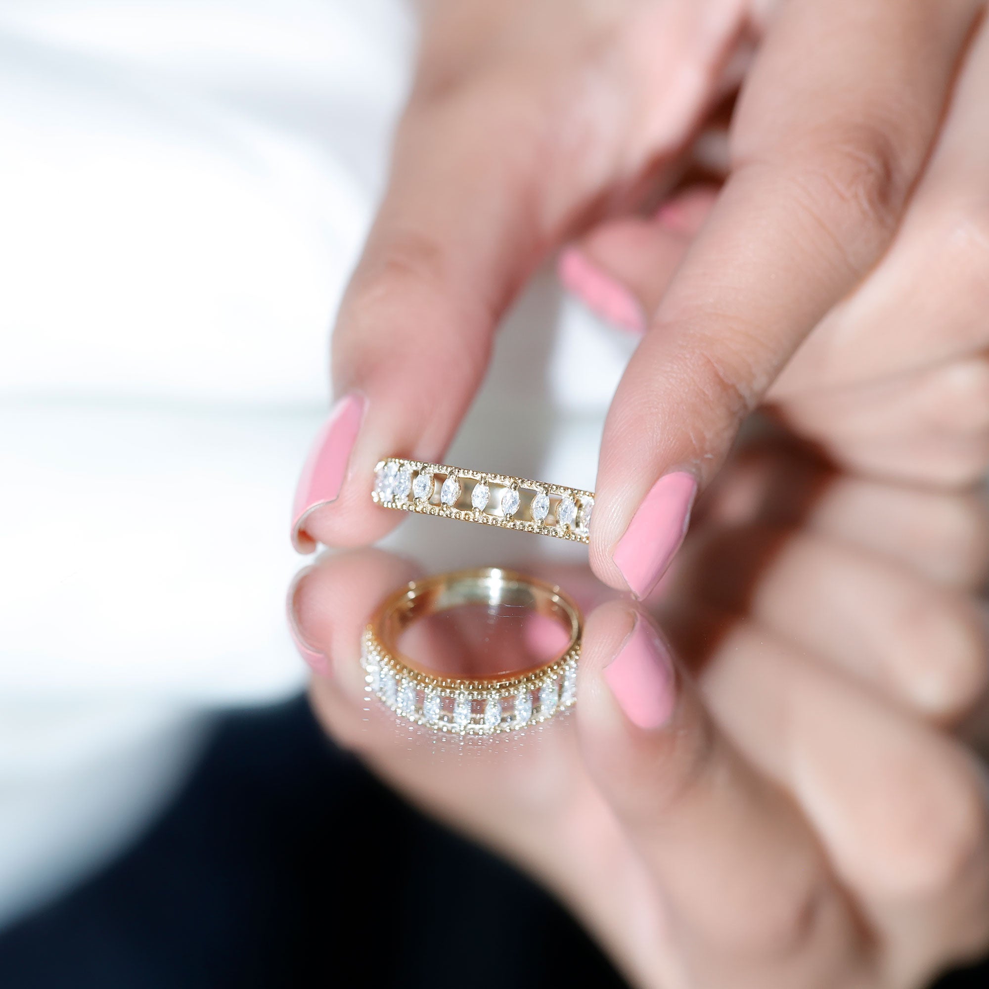 Marquise Cut Diamond Half Eternity Ring with Beads