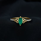 The intricate design of this Emerald Engagement Ring gives it a unique charm that stands out while still feeling timeless. At the center, a marquise shaped emerald measuring 4X8 MM is set securely in prongs, drawing attention with its elegant shape. On either side of the emerald, delicate Celtic knot details flow along the band, giving the Emerald and Diamond Engagement Ring a meaningful touch. The endless loops of the knots symbolize love, loyalty, and connection, making the Trinity Knot Ring a true representation of a bond that lasts forever. To add a subtle sparkle, the band is accented with small round diamonds. The diamonds highlight the emerald while keeping the design balanced. The combination of AAA quality real emerald and HI-SI quality natural diamonds creates a sophisticated contrast that feels both classic and modern at the same time. Its thoughtful design ensures this Marquise Emerald Ring is special enough for a proposal yet simple enough to be worn daily. Perfect for anyone who loves jewelry with meaning, this Celtic Design Engagement Ring blends tradition with elegance. It is a piece that tells a story of strength, unity, and everlasting love, making it a wonderful choice for someone who appreciates symbolism, fine craftsmanship, and style that will be treasured for years to come.
