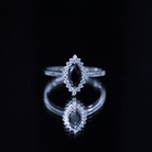 It is a Halo Ring consisting of Marquise Cut Created Black Diamond as a Solitaire embellished in Prong Setting with round shape Moissanite as Halo embellished in Prong Setting.