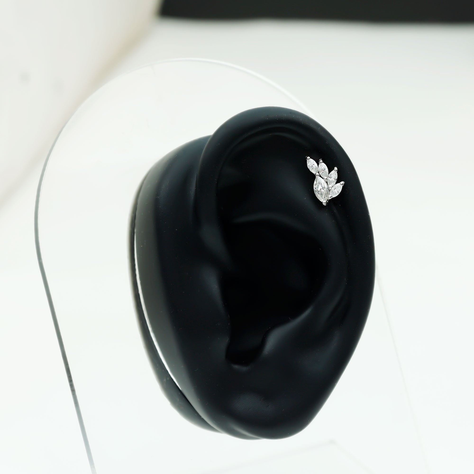 This Moissanite Cluster Helix Earring is embellished with Marquise Cut Moissanite secured in Prong Setting, crafted with Solid Metal. Highlight your Helix, Cartilage, or Upper Lobe with this trendsetting Marquise Moissanite Earring and style it with your casual and party attires to stand out from the crowd.