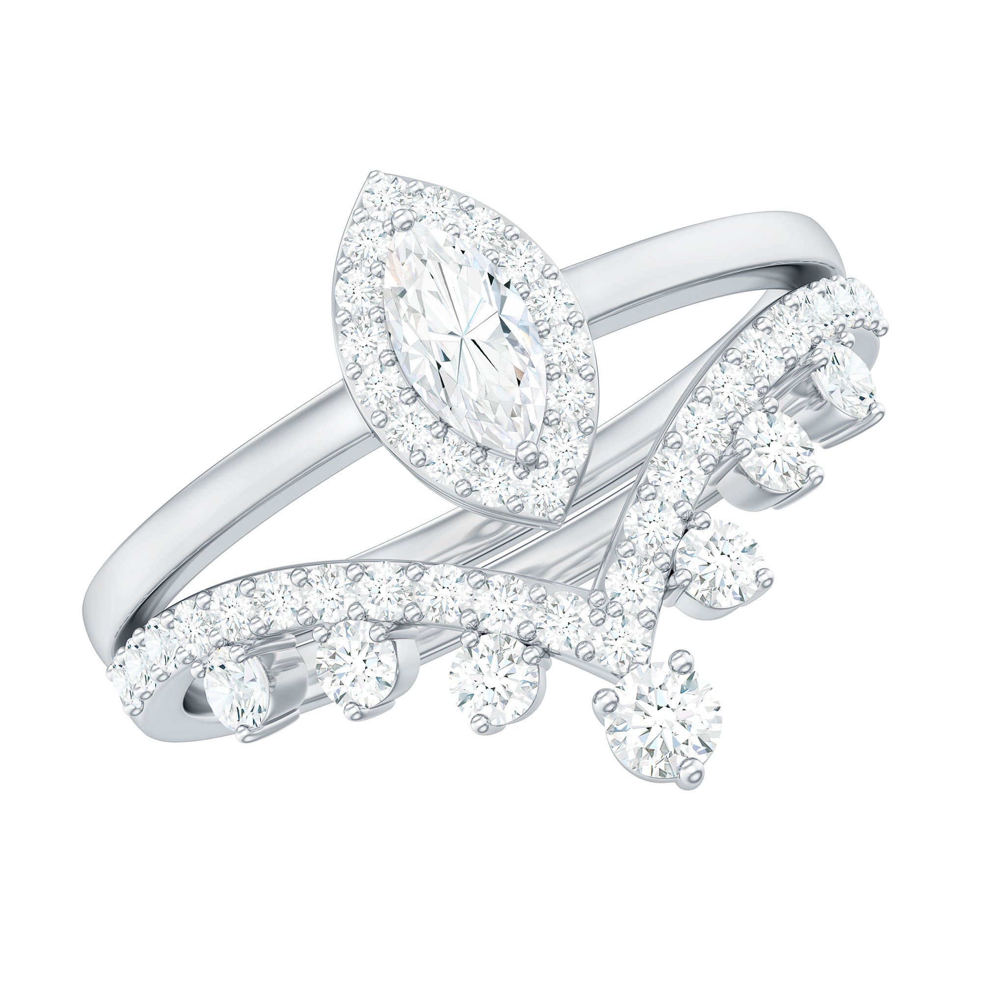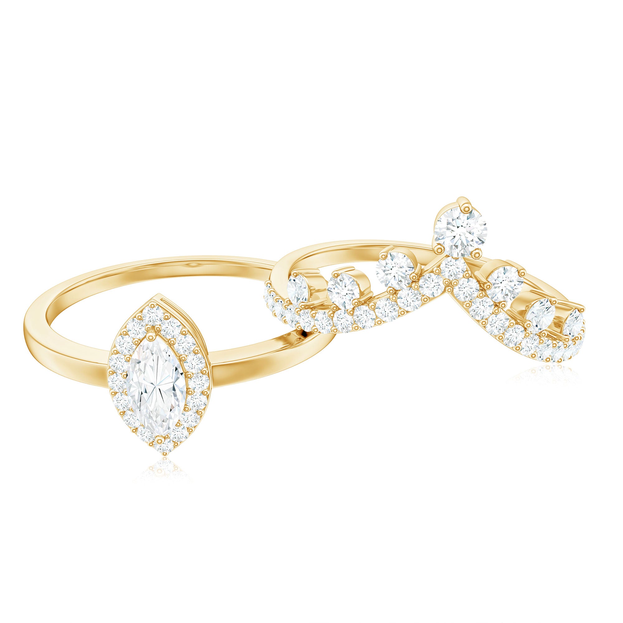 Marquise Cut Moissanite Halo Wedding Ring Set For Women