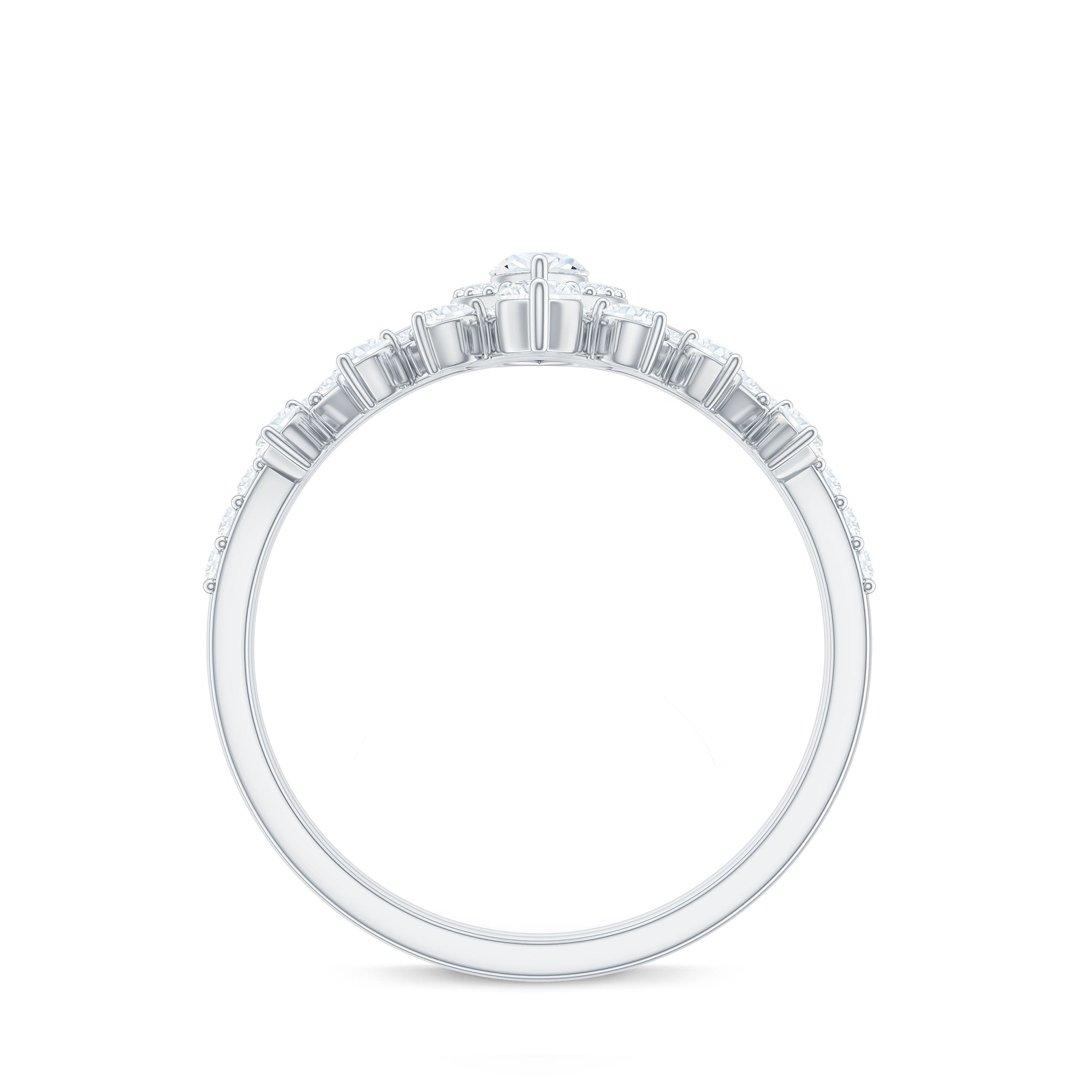 Make your forever shine with a perfect mix of modern sparkle and classic beauty. This elegant Moissanite Bridal Ring Set includes a halo engagement ring and a matching chevron wedding band, thoughtfully designed to celebrate love in a timeless way. At the center of the engagement ring is a brilliant 3X6 MM marquise cut moissanite, known for its eye-catching shape and radiant shine. Surrounded by a delicate halo of round moissanite stones, the center gem sparkles from every angle, creating a graceful and glowing look. The matching chevron wedding band curves gently around the engagement ring, adding a modern touch. It is also accented with small round moissanite stones, giving the Halo Bridal Set a beautifully stacked and finished look. Crafted with care and attention to detail, this Marquise Wedding Ring Set combines stunning style with a more ethical and affordable choice than traditional diamonds. Available in US ring sizes 3 to 13, this Engagement Ring and Wedding Band Set is made to fit comfortably and suit a variety of styles. Whether you are planning a proposal or looking for a meaningful anniversary gift, the rings arrive in a luxury jewelry box, ready to be treasured for years to come.