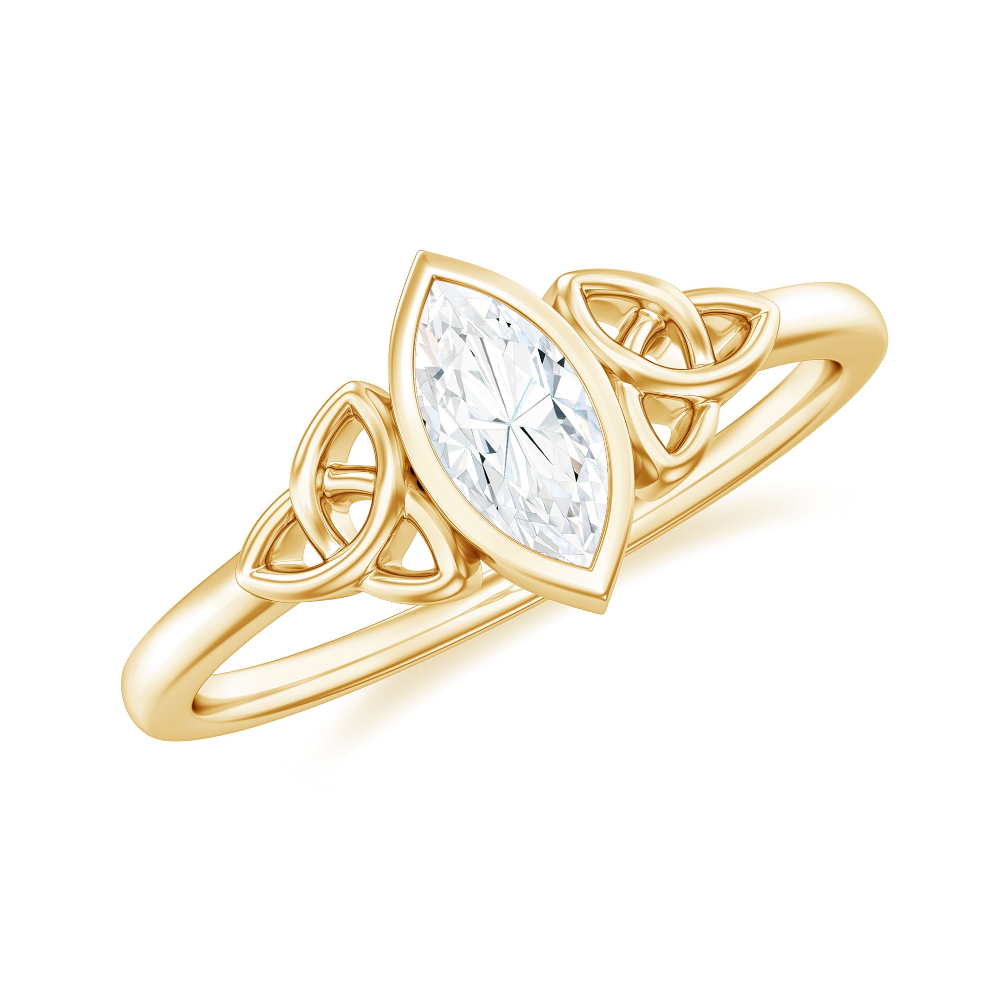 Marquise Cut Moissanite Solitaire Celtic Knot Ring in Bezel Setting