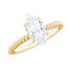 Capturing hearts with this Solitaire Engagement Ring, because of its simplicity and unique twisted rope style shank. Its effortless elegance and approachable design resonated widely, making it a standout piece in our collection. Featuring 5X10 mm Marquise Cut Moissanite set at the center in a 4-prong setting. Incorporating a thoughtful element, concealed moissanite stones are delicately positioned beneath the central stone, an intimate feature that introduces unexpected brilliance and sentimental allure, akin to a whispered vow in this 1 Carat Engagement Ring. This delicate detail imparts a handcrafted essence to the Moissanite Solitaire Ring, distinguishing it from conventional designs. Carefully crafted for the ones who appreciate beauty and significance, this Marquise Cut Moissanite Ring serves as a delightful option for proposals, anniversaries, or even as a special gift for oneself. It is offered in a variety of metal colors and purity levels and is presented in an exquisite jewelry box, making it ready for gifting or personal enjoyment. Romantic, elegant, and refreshingly unique, this Womens Moissanite Ring is intended for those who believe in love that deepens over time, much like a flourishing garden.